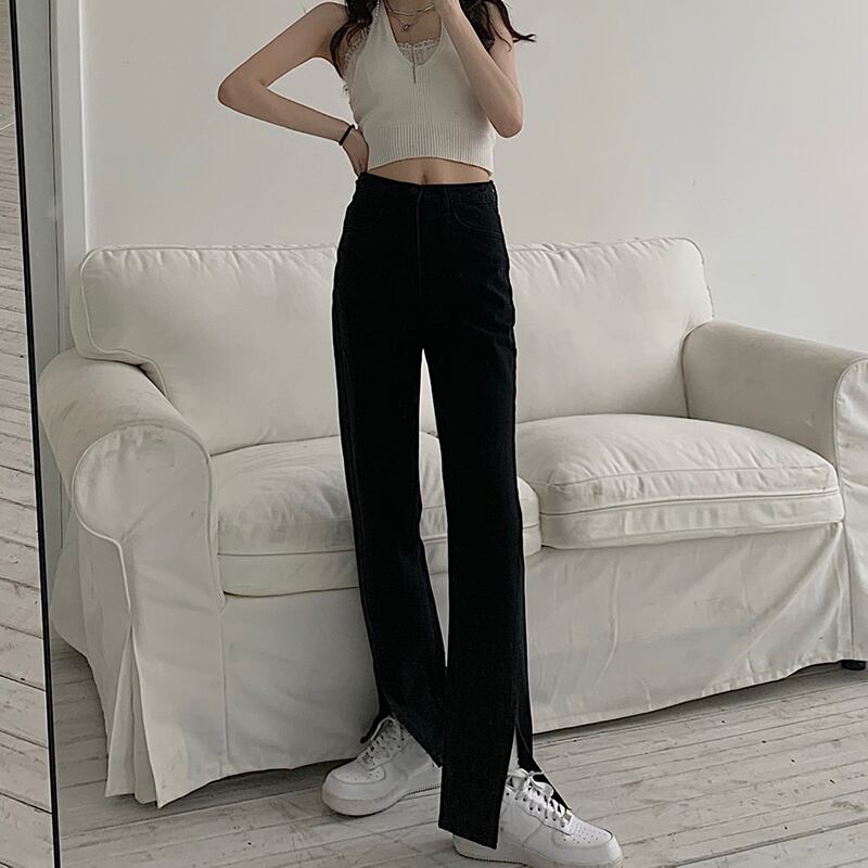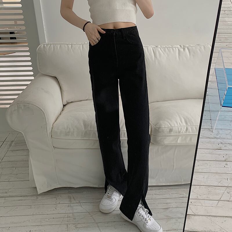 ブラックハイウェストウェストジーンズ レディースオータムパンツ ワイドレッグ ストリート 秋物 ワイドパンツ kumikum89471647169