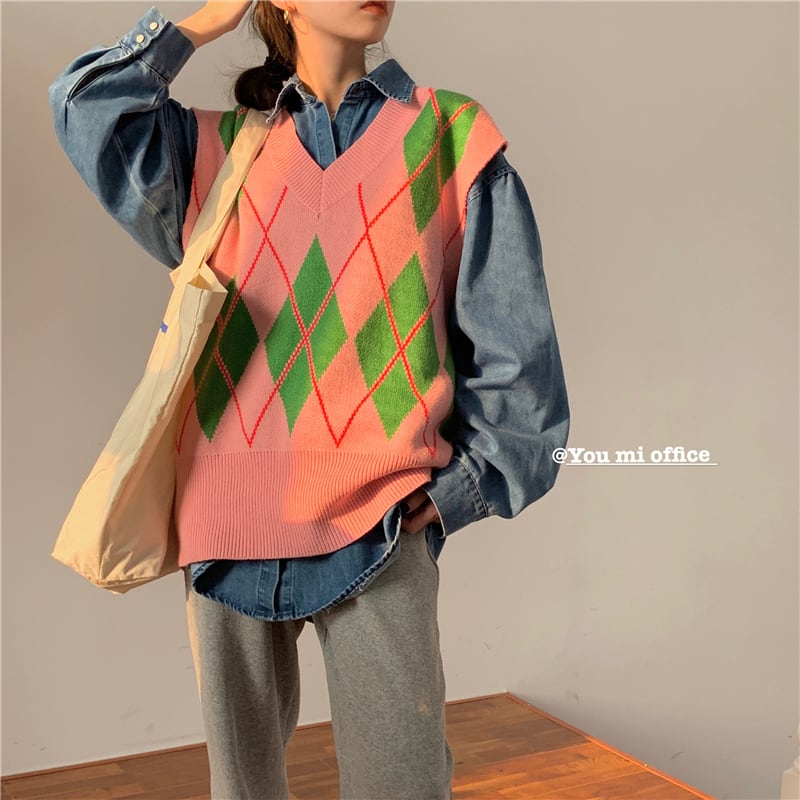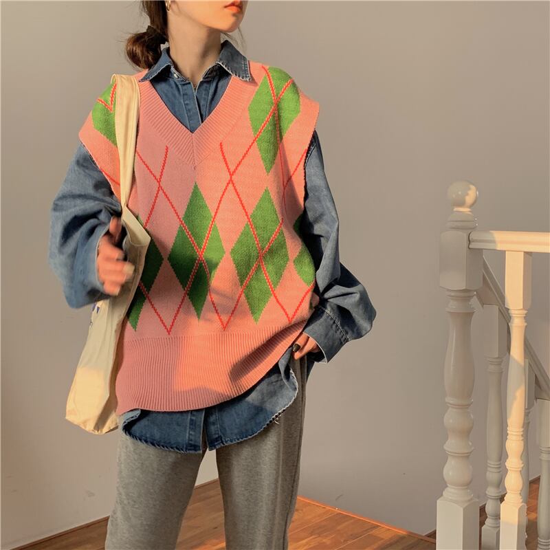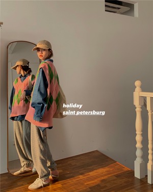 スタンダードVネックニットレディースルーズノースリーブトップス レトロ kumikum66784690458