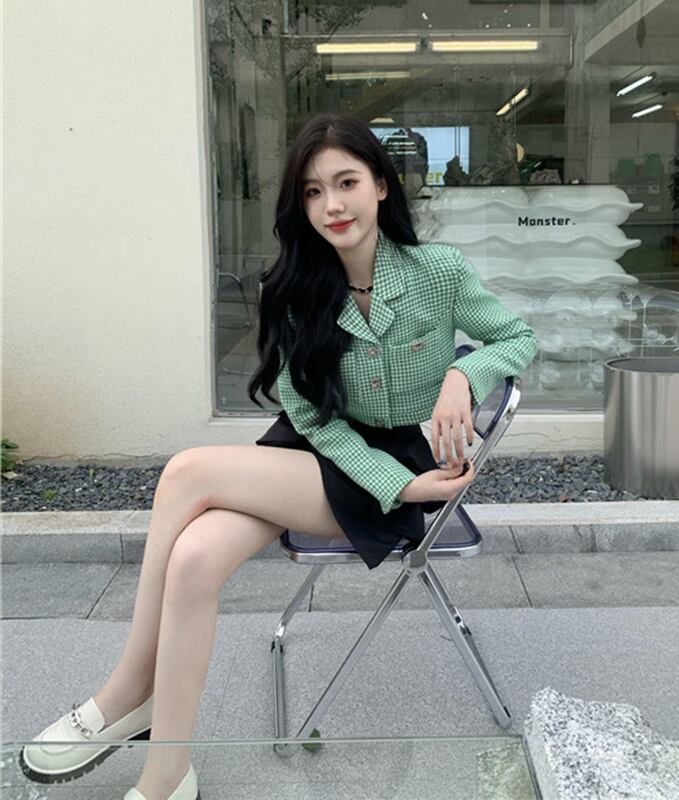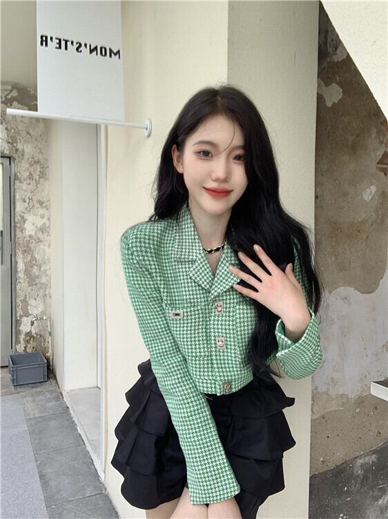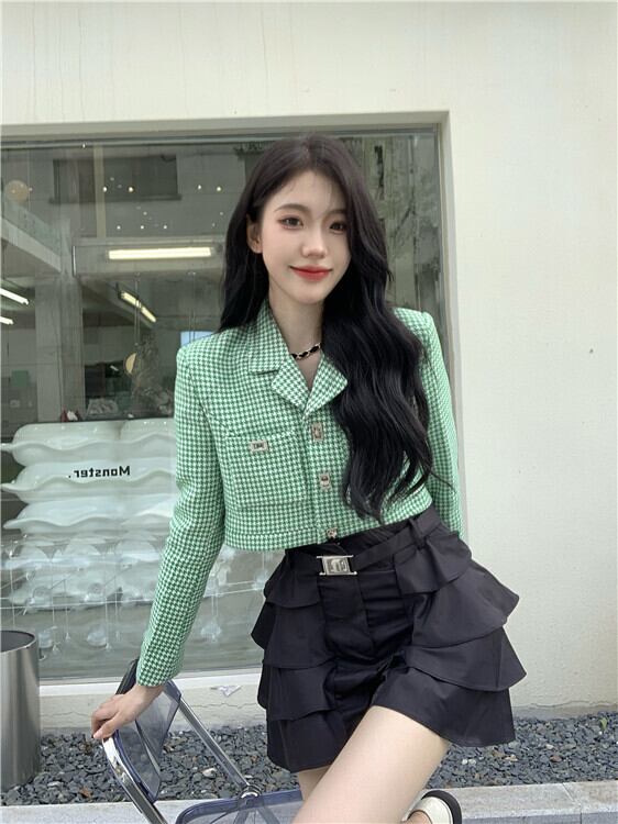 色:スカート,グリーングリッド