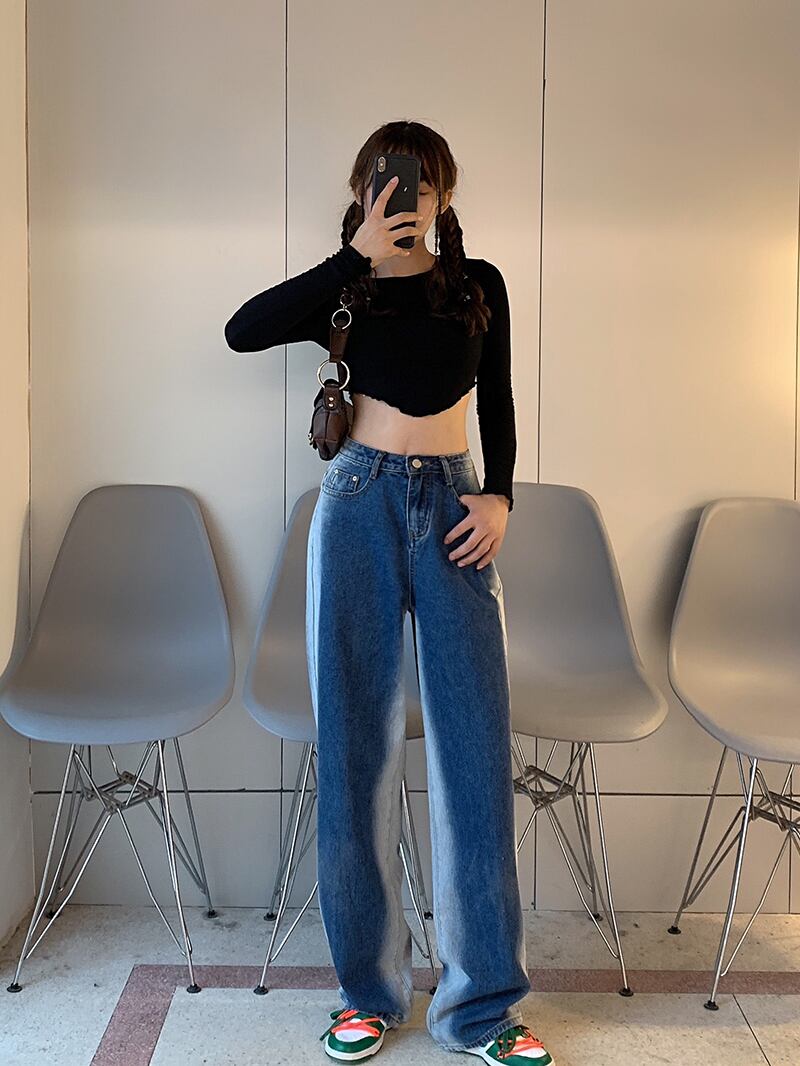 ジーンズ レディースオータムハイウェスト薄手ルーズパンツ 秋物 kumikum43090780314