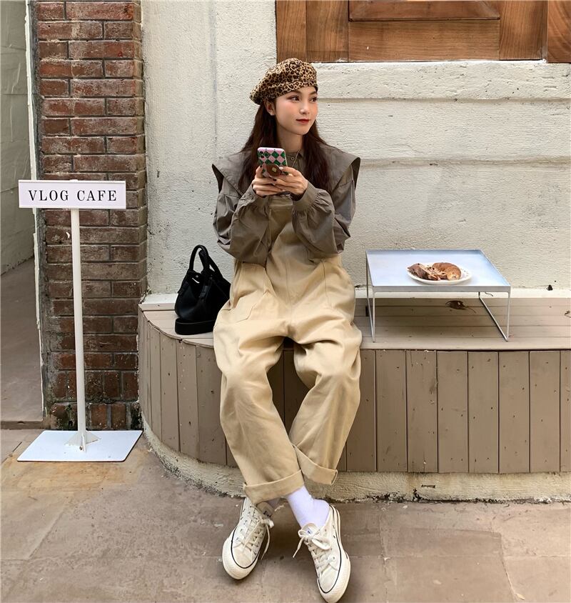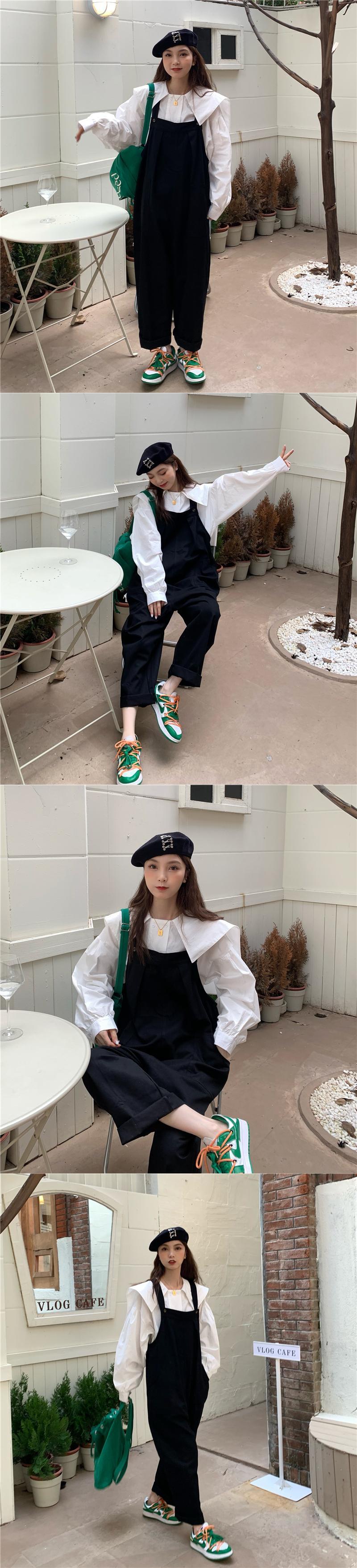 色:白のシャツ,緑のシャツ,カーキビブ,黒いオーバーオール