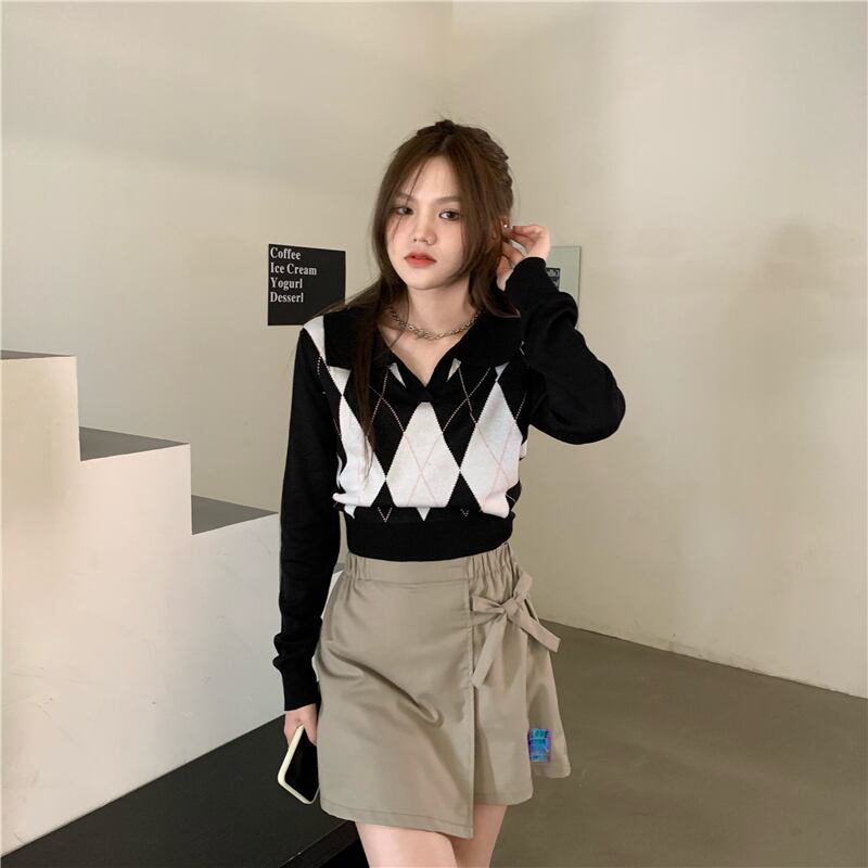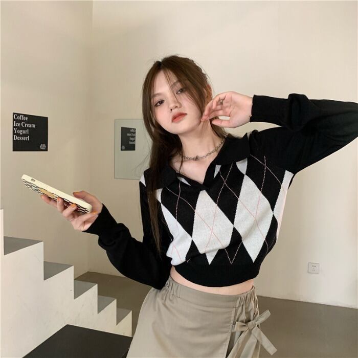 スタンダードスタイルショートセーター オータム薄手トップス ロング レトロ 秋物 kumikum98526408897