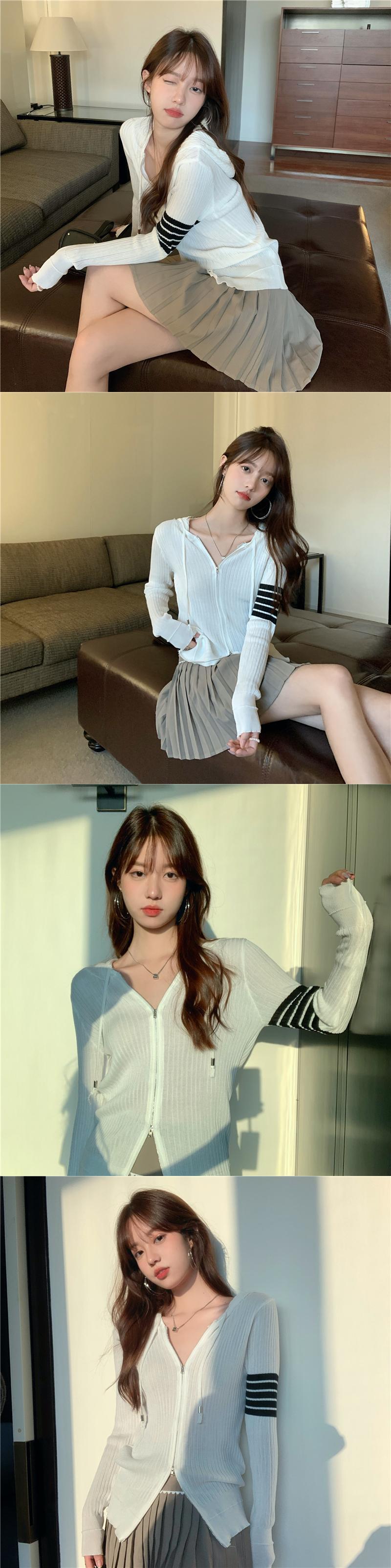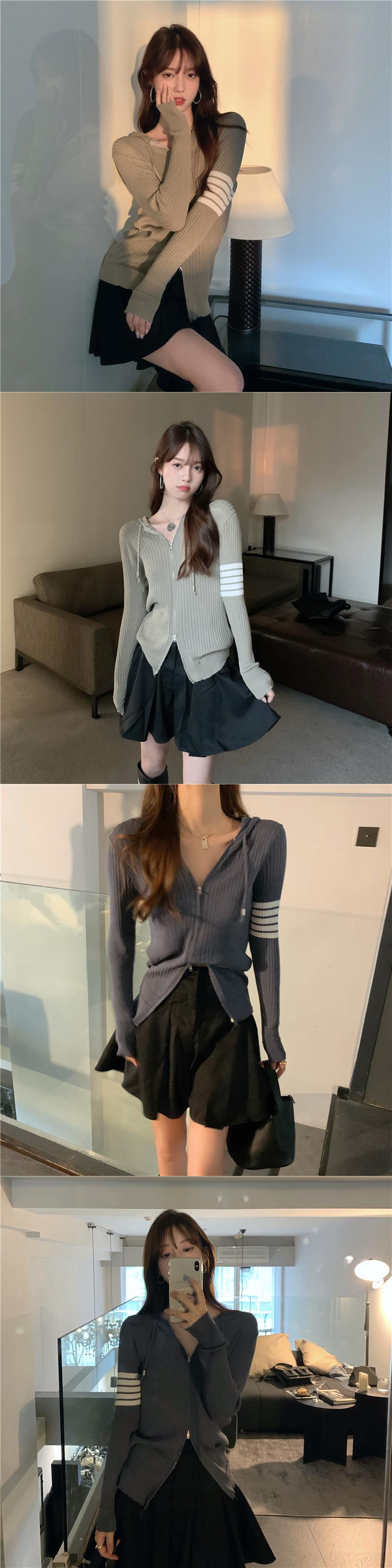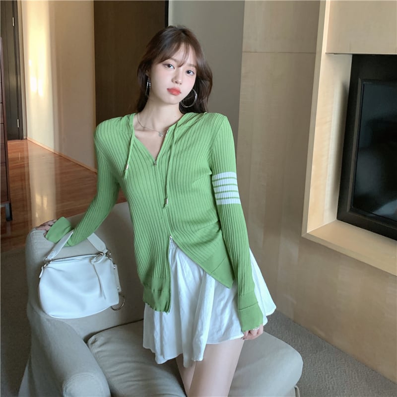 フード薄手シャツ レディースオータムスリムストライプセーター ロング 秋物 kumikum74647703311