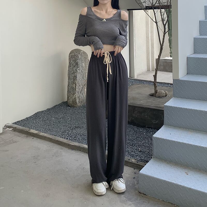 ギャザーパンツ ハイウェストウェストカジュアルサマールーズ 夏物 kumikum50531297210