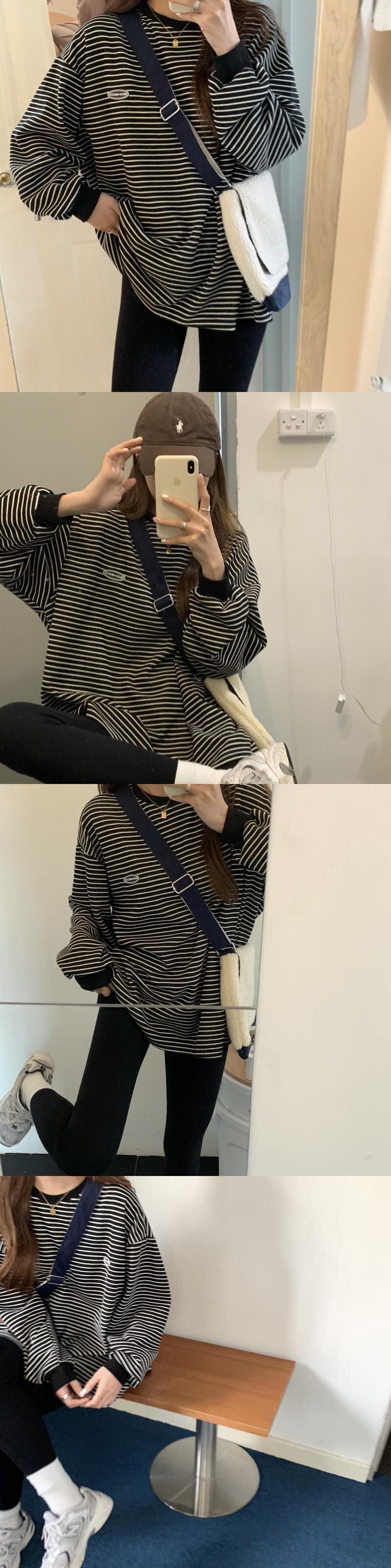 プルオーバー Tシャツ スタイルカジュアルストライプセーター オータムルーズジャケット ロング 秋物 kumikum12960957945