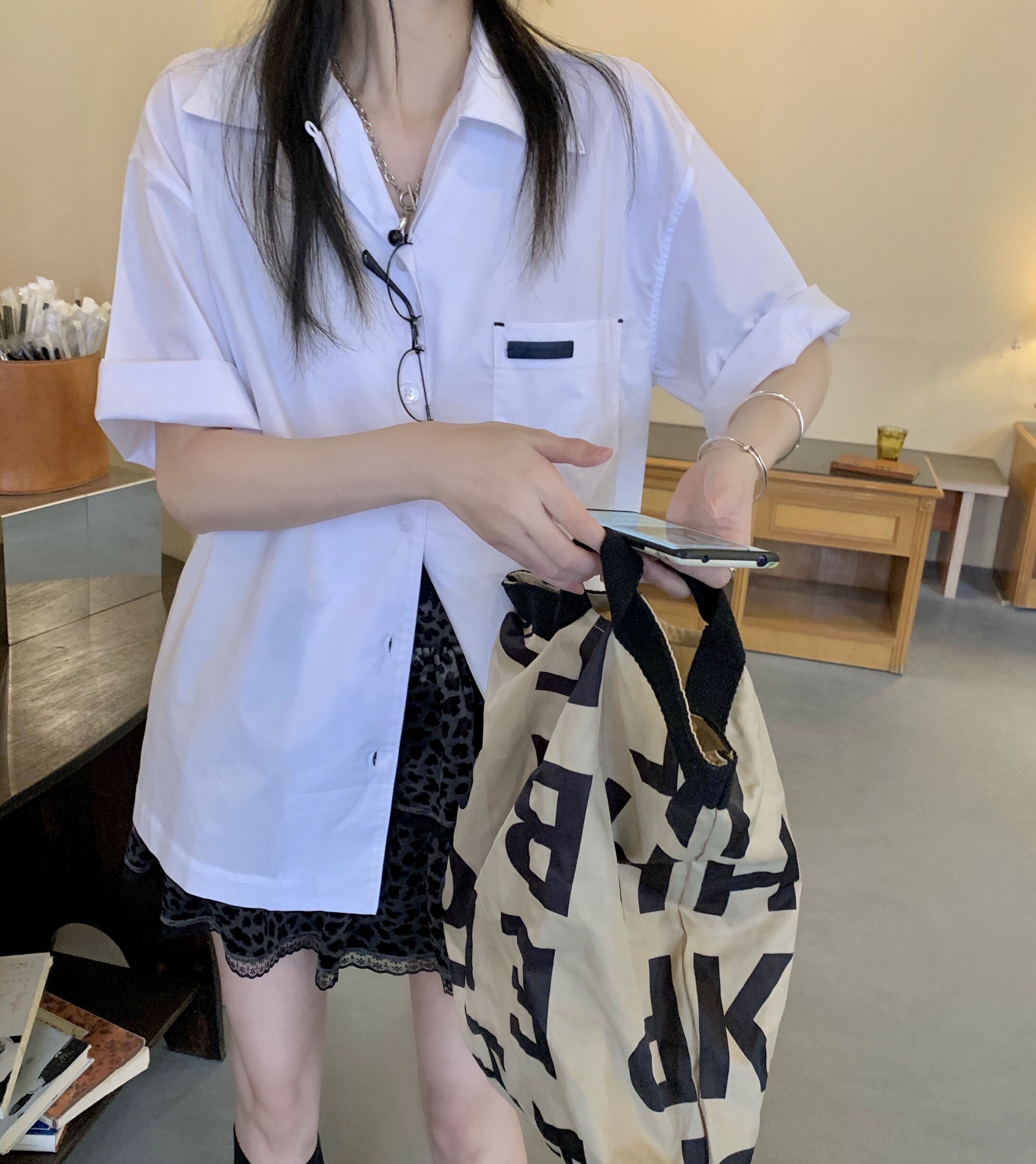 ホワイトシャツ サマーベーシックルーズ薄手ブラウス スタイル 夏物 kumikum4900795656