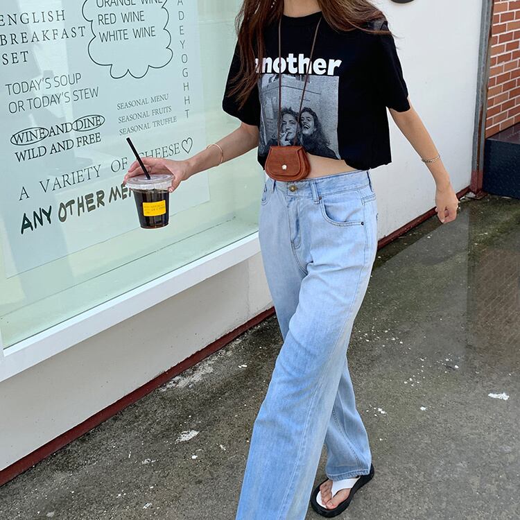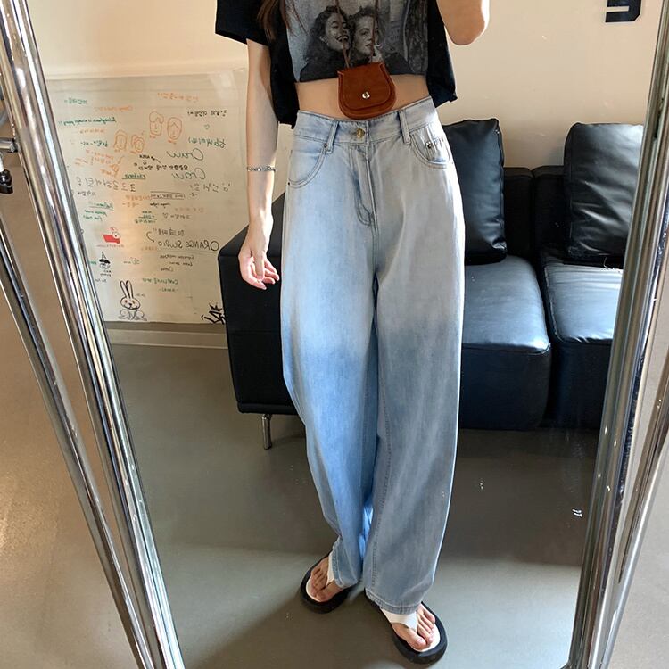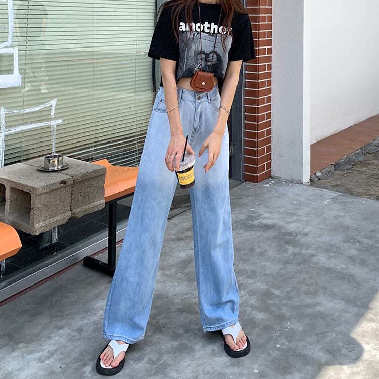 カラージーンズ ハイウェストウェストルーズパンツ サマー薄手 夏物 kumikum89405827835