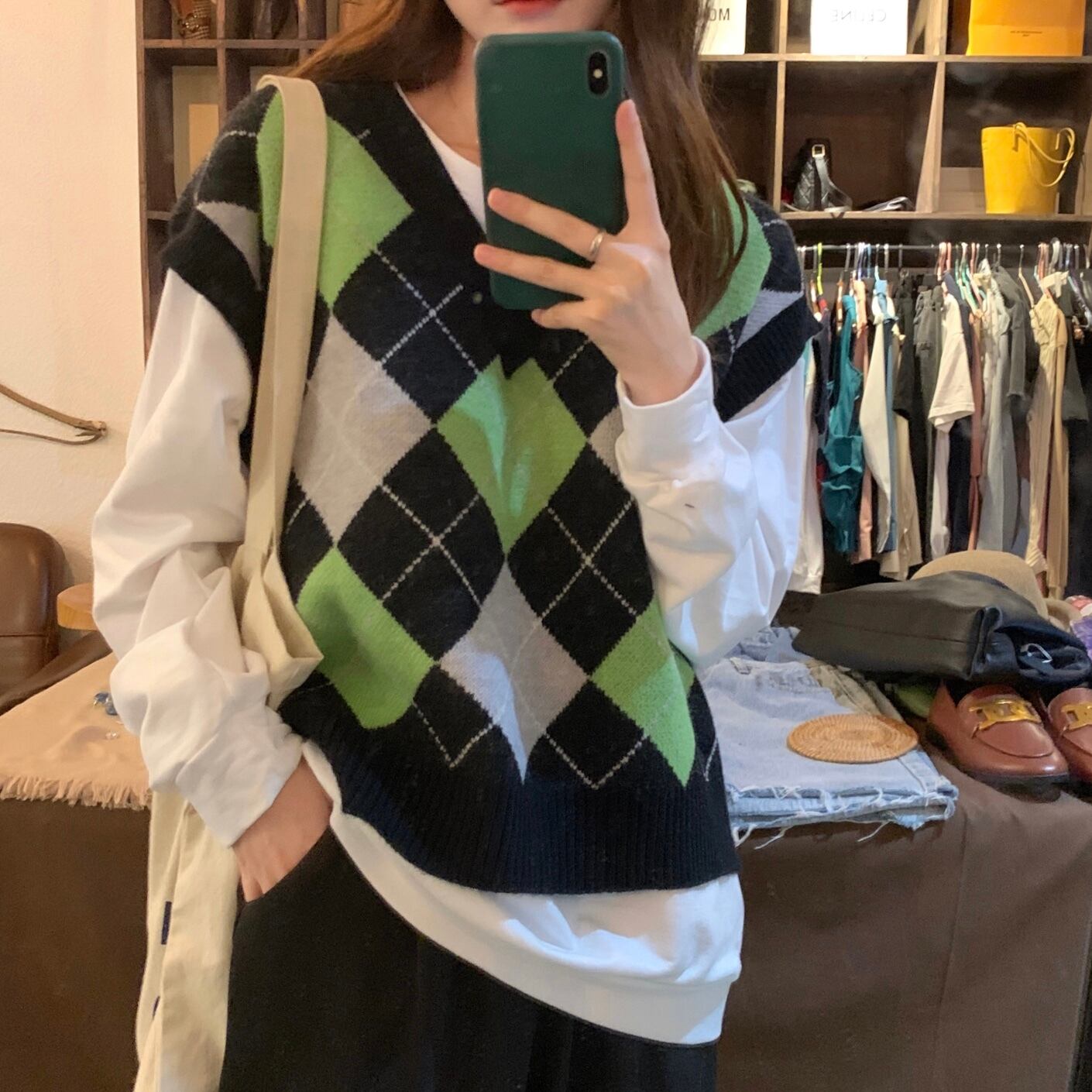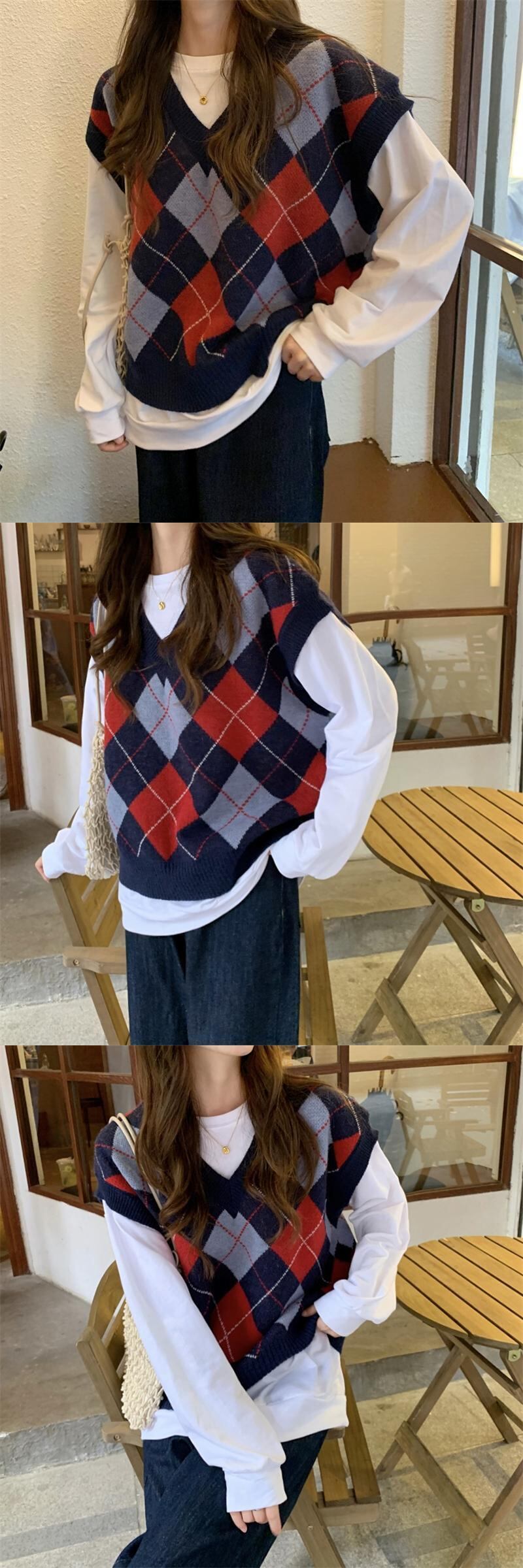 ニットセーター レディースオータムノースリーブVネックプルオーバー 秋物 kumikum86590437203