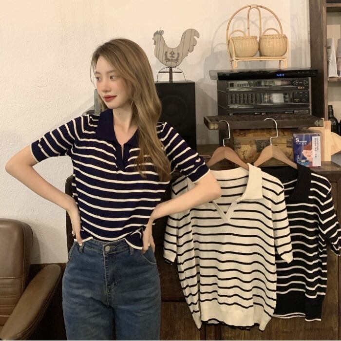 薄手ストライプセーター レディースサマールーズシャツ トップス 夏物 kumikum72179124275
