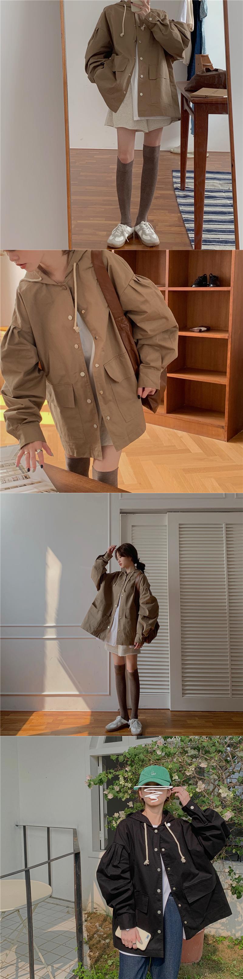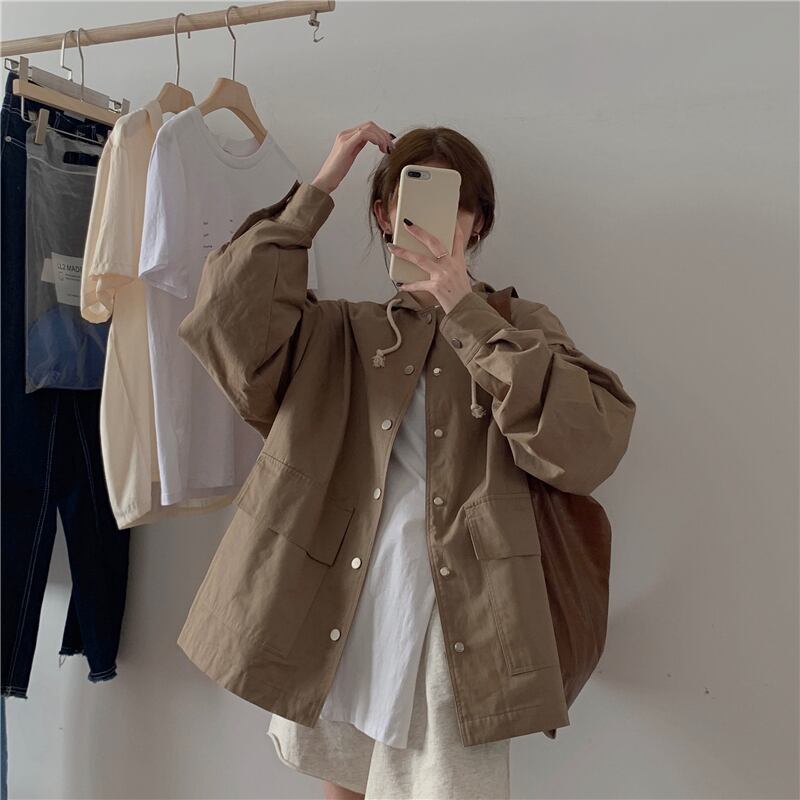 フードオーバーオール ジャケット オータムスタンダードカーキ ロング レトロ 秋物 kumikum85887478679