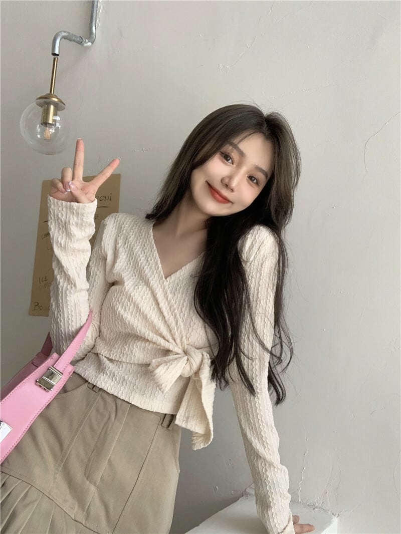 ブラックブラウス Vネックスリムシャツ オータムTシャツ ロング 秋物 kumikum88631469622