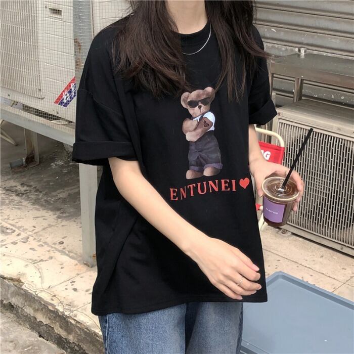 プリント柄ラウンドネックシャツ サマールーズTシャツ 夏物 Oネック kumikum48807582166