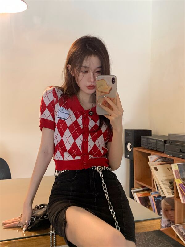 カラー薄手ショートトップス レディースサマーニットカーディガン 夏物 kumikum5429894843