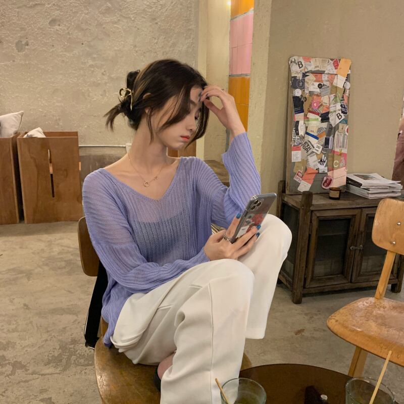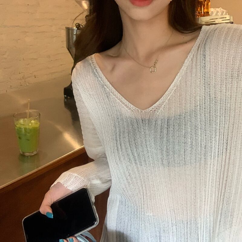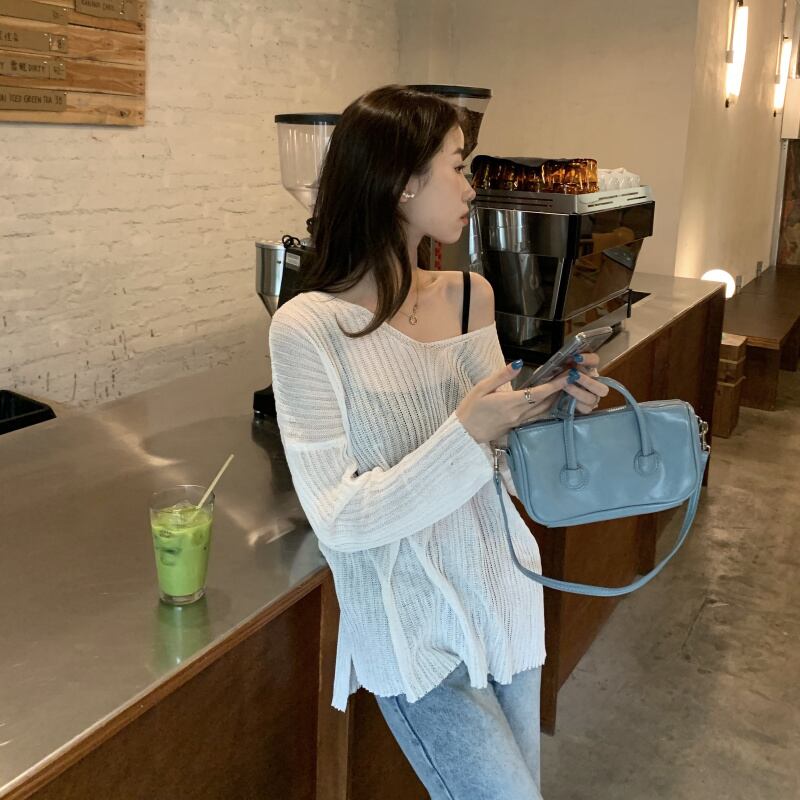 薄手ニットセーター レディースオータムカラールーズスタイルブラウス ロング 秋物 kumikum93764761151