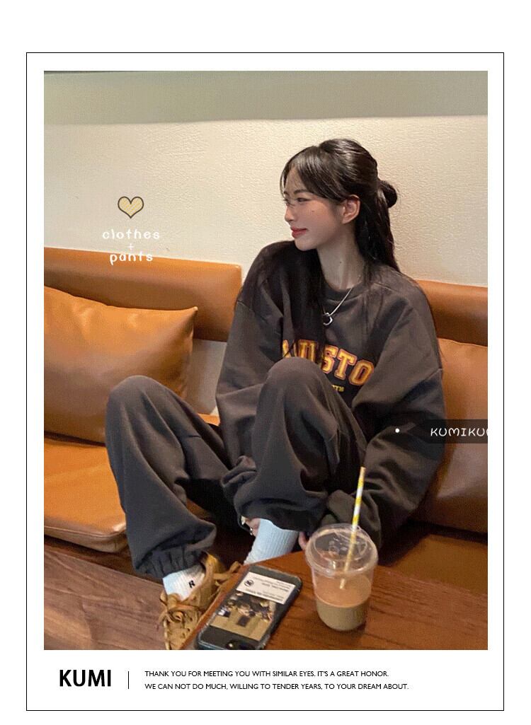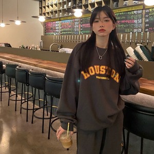 レディースラウンドネックプリントフードセーター ルーズ ウィンター 冬物 Oネック kumikum15467630076