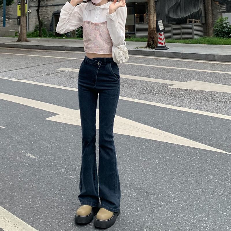 スタンダードパンツ ハイウェスト薄手ジーンズ オータム レトロ ストリート 秋物 kumikum19311958766