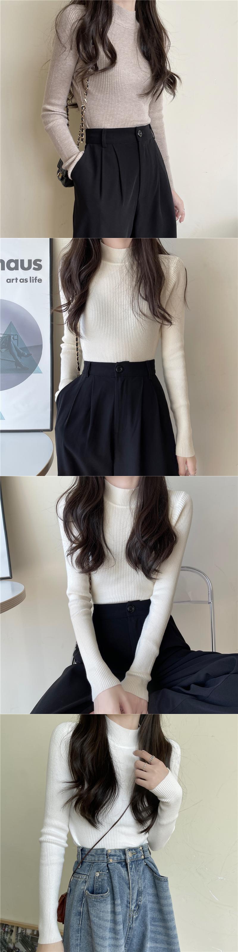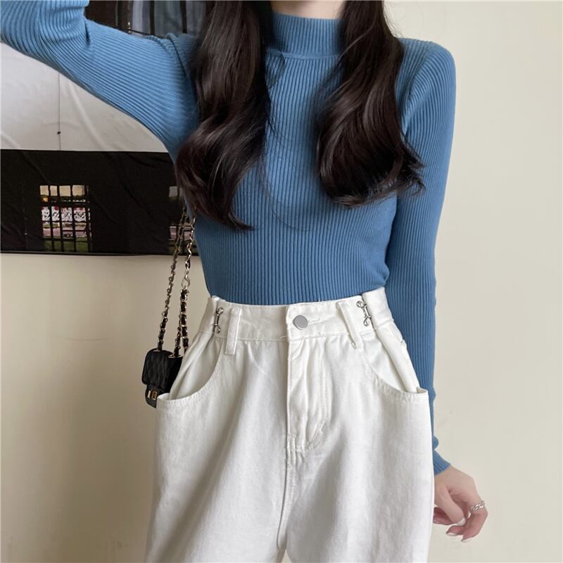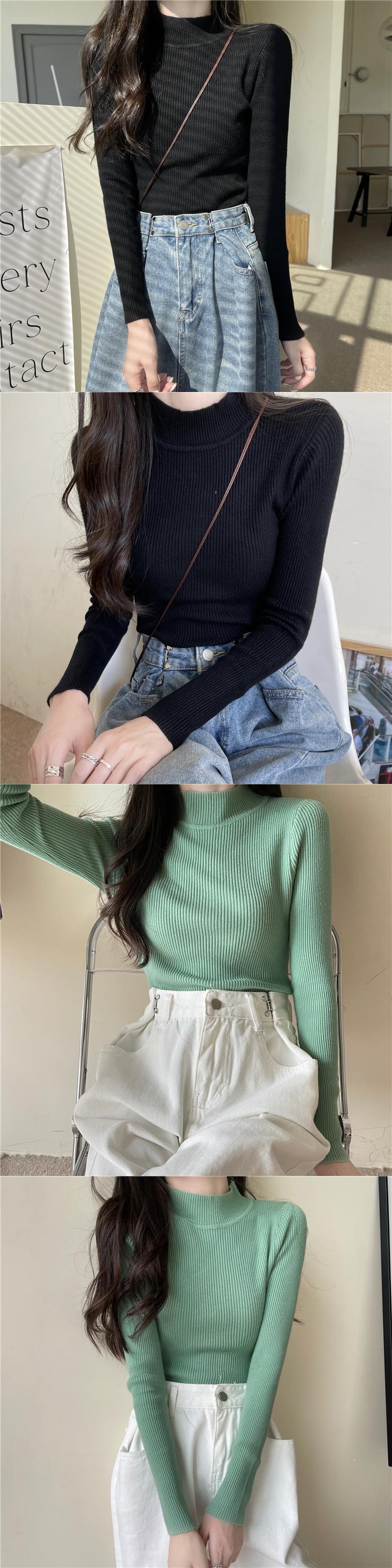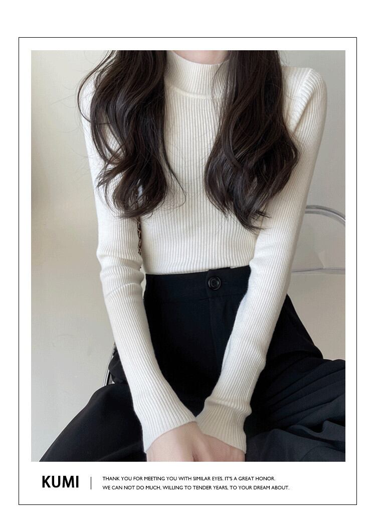 カラーセーター オータムウィンタースリム薄手ソリッド シャツ ロング 秋物 冬物 ソリッドカラー kumikum49046435292