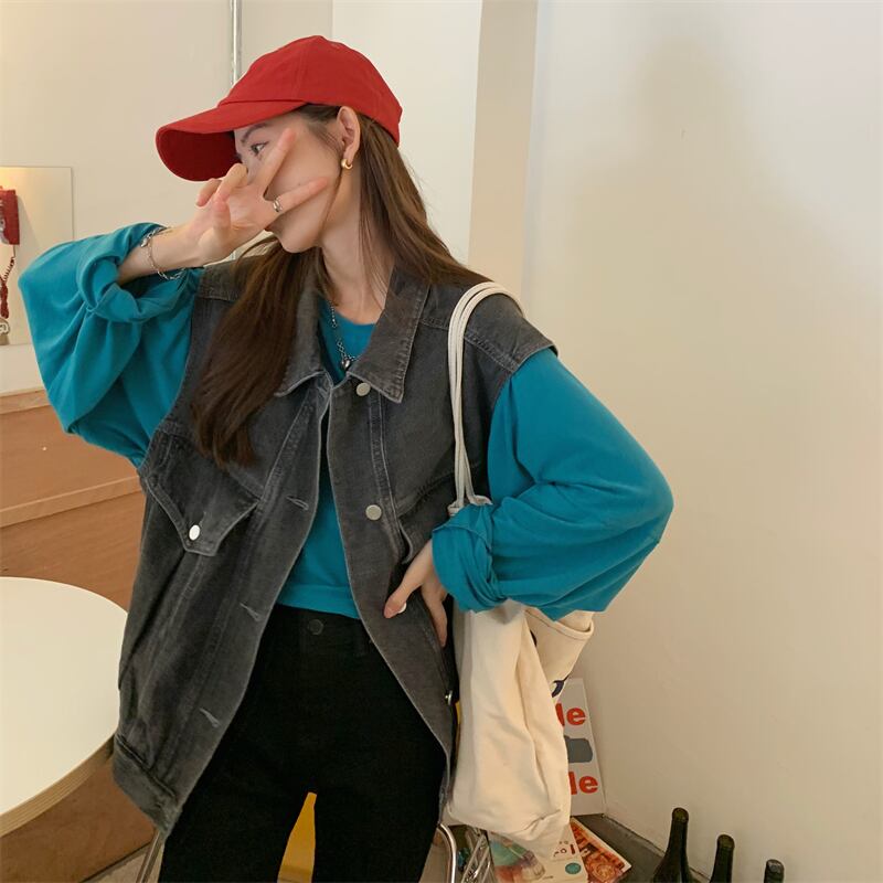 色:カウボーイベスト,青いTシャツ