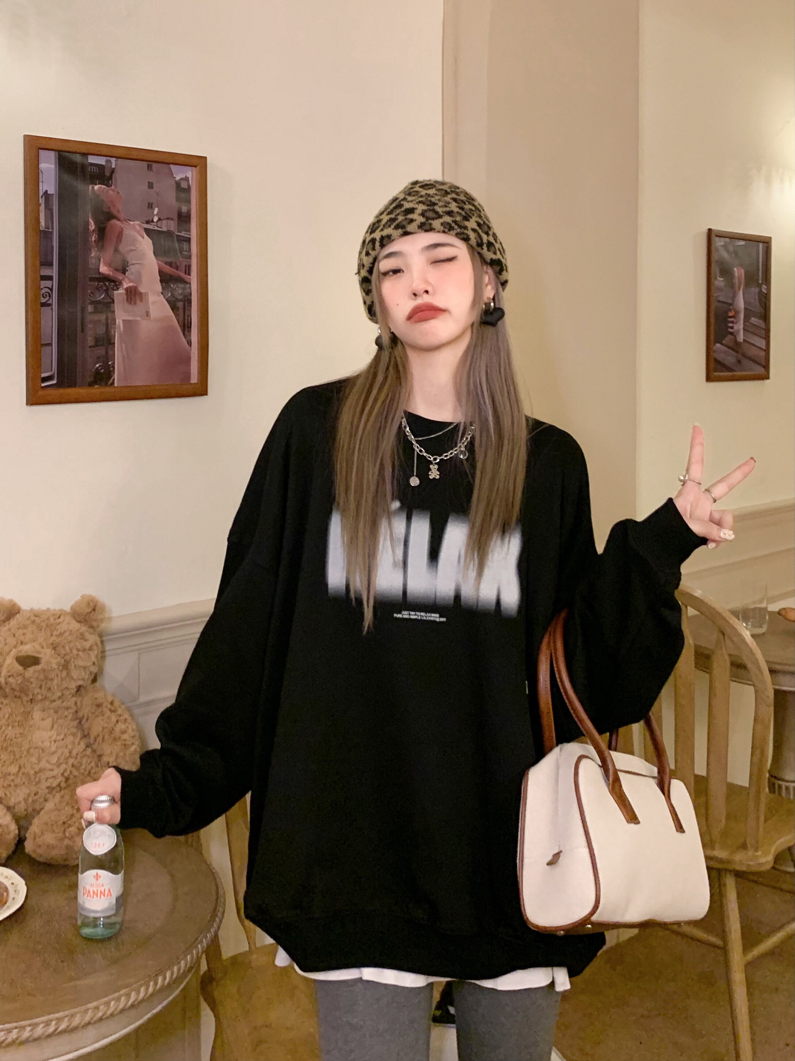 スタイルプリントセーター レディースオータムスタンダードルーズカジュアルシャツ ロング レトロ かわいい 秋物 kumikum90411012576