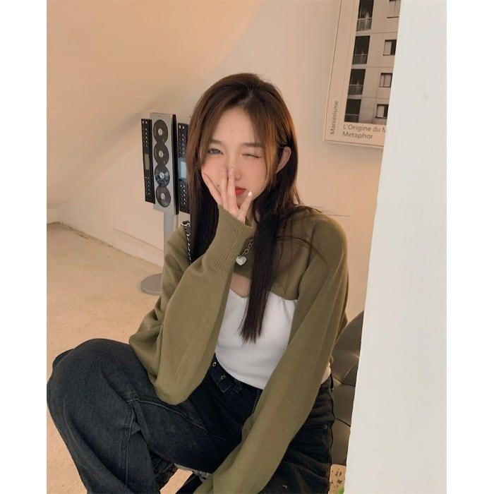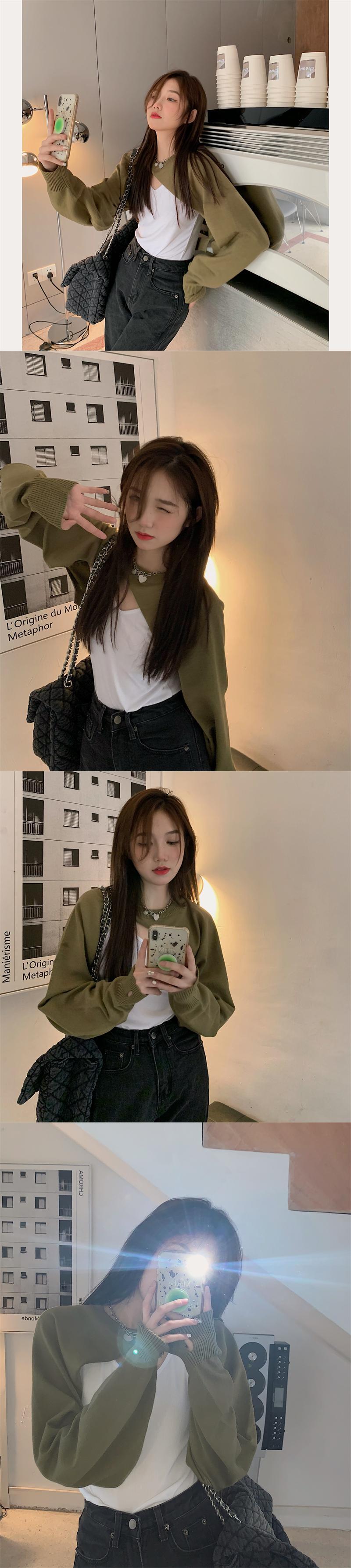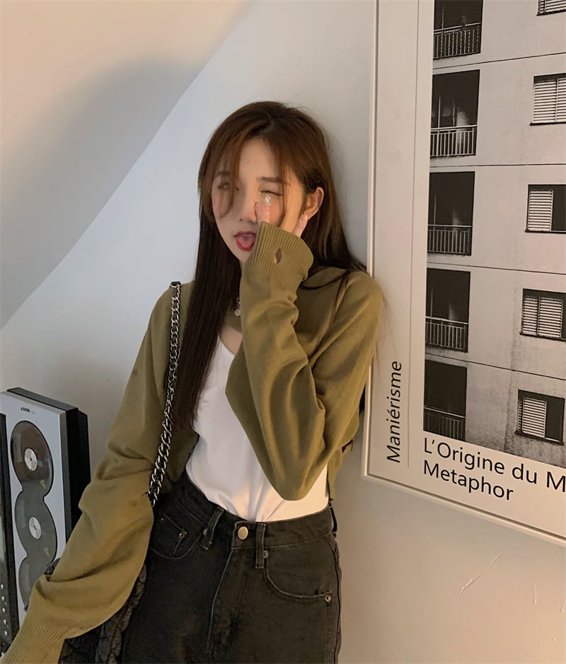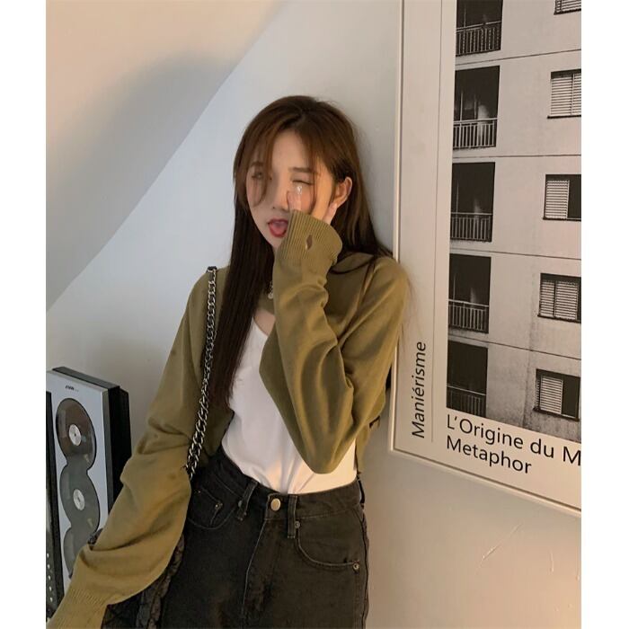 レッドショートブラウス オータムニットトップス 長袖スリーブジャケット レディース ロング ストリート 秋物 kumikum61549325886