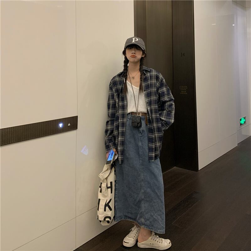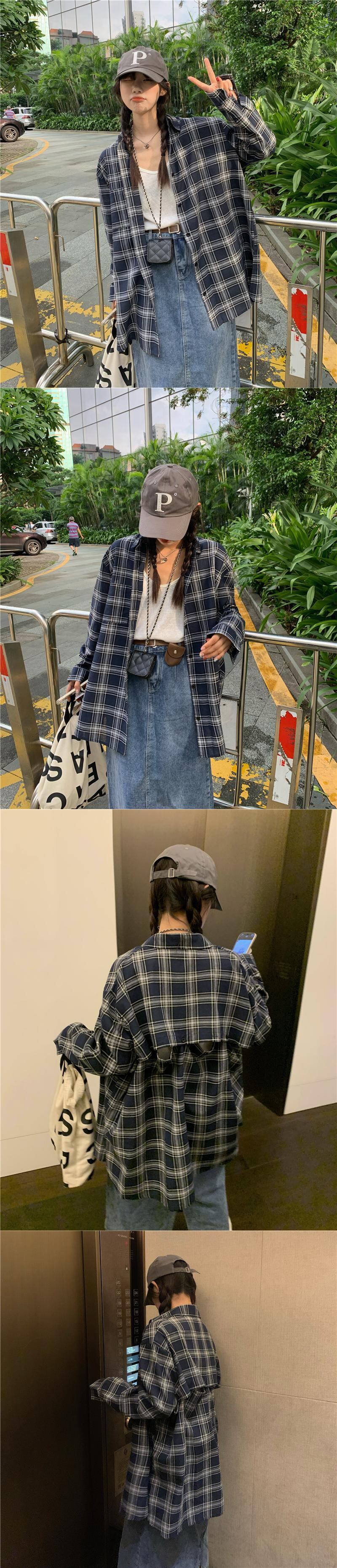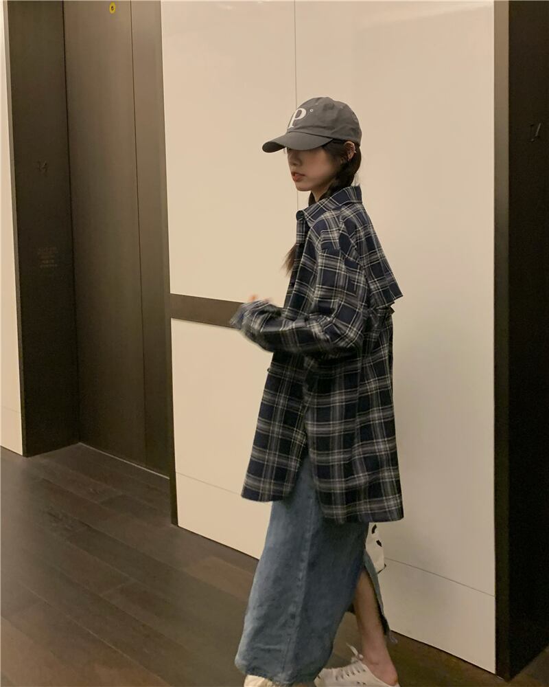 カジュアル格子柄シャツ オータムルーズジャケット トップス レディース ロング 秋物 kumikum77298924133