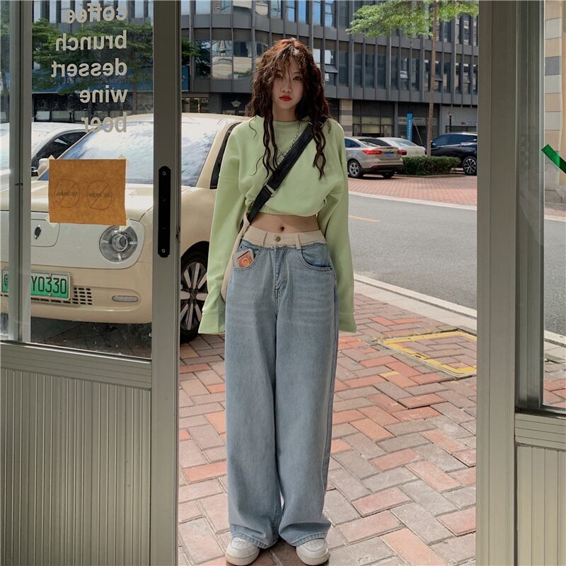 ハイウェストウェストワイドレッグジーンズ カラーパンツ オータムスタンダードレディース レトロ 秋物 ワイドパンツ ステッチ kumikum50614077417