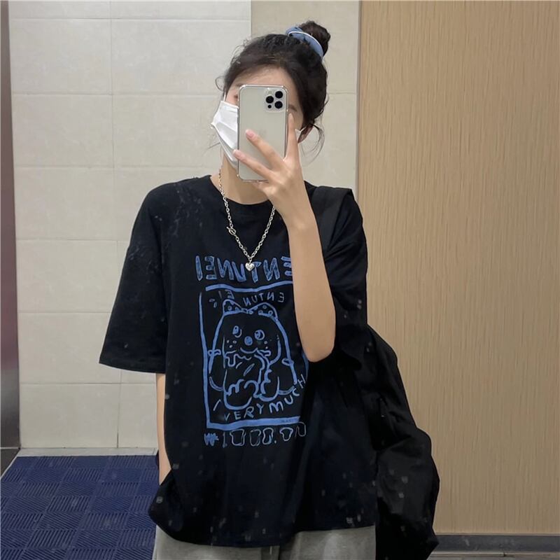 Tシャツ シャツ レディースサマープリントカジュアルルーズラウンドネックトップス 夏物 Oネック kumikum53474445229