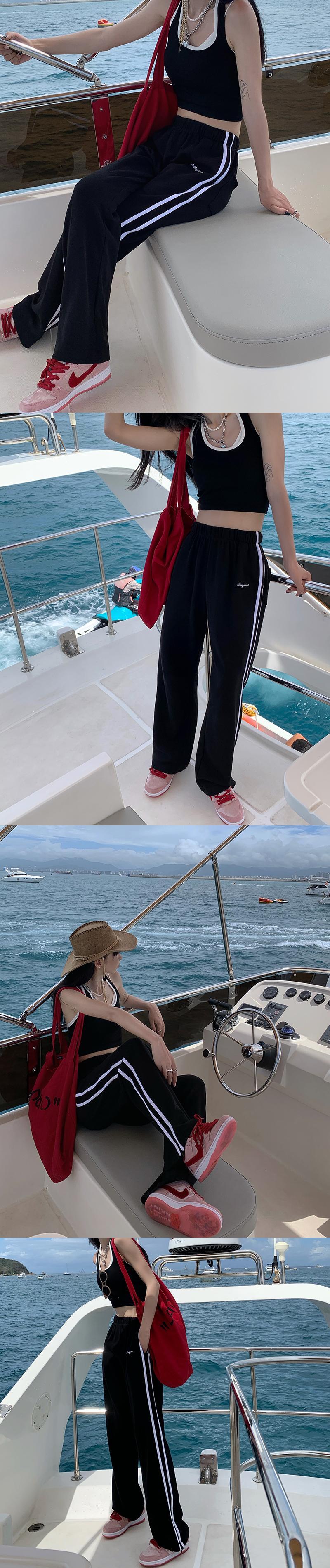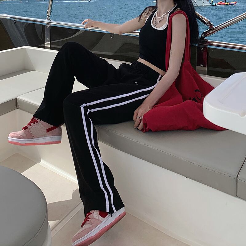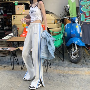 カジュアルパンツ サマーストライプジッパースリットルーズ 夏物 kumikum54693186083