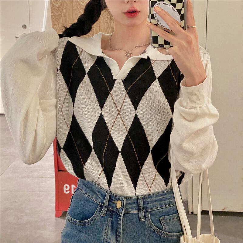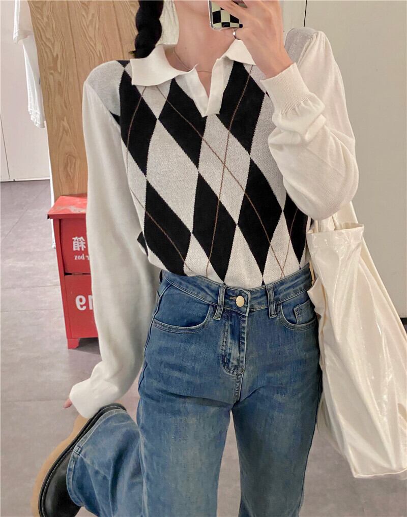 ツーピースカラーセーター オータム薄手トップス ロング 秋物 kumikum56017524449