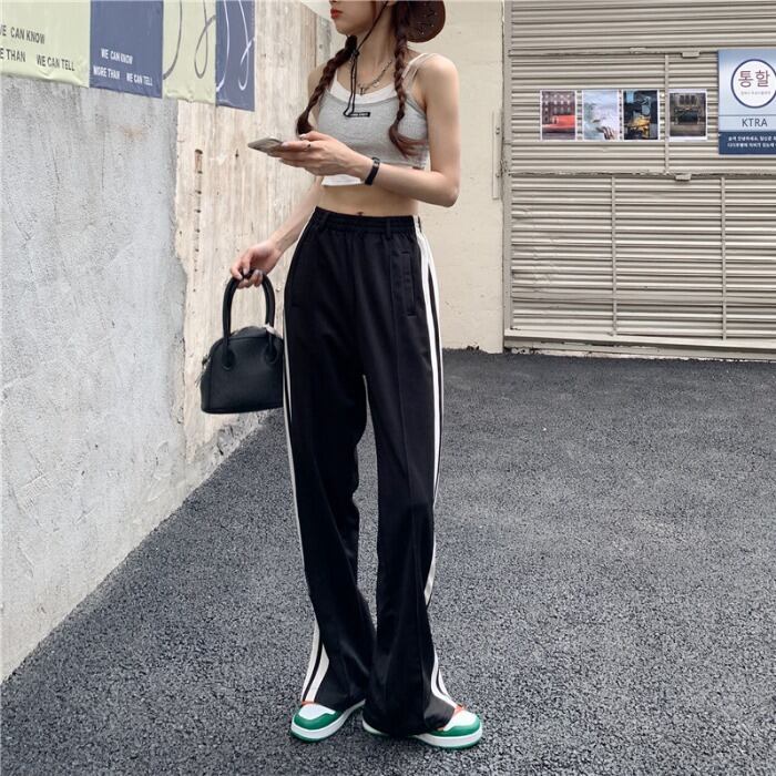 ストライプカジュアルパンツ ルーズサマーハイウェスト薄手 夏物 kumikum61520241051
