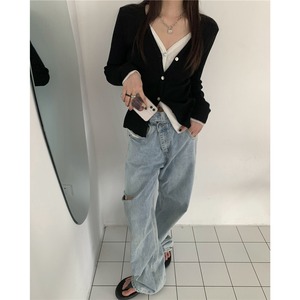 オータムブラウス Vネックカラーセーター ロング 秋物 kumikum40301035138