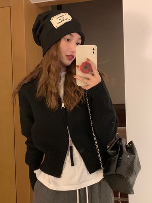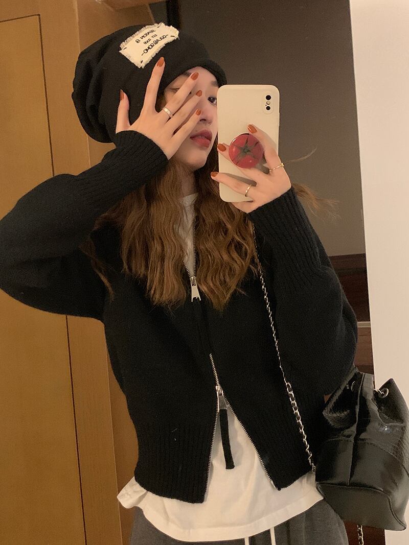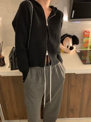 フードジッパージャケット ショートニットセーター オータム ロング ストリート 秋物 kumikum64707531545