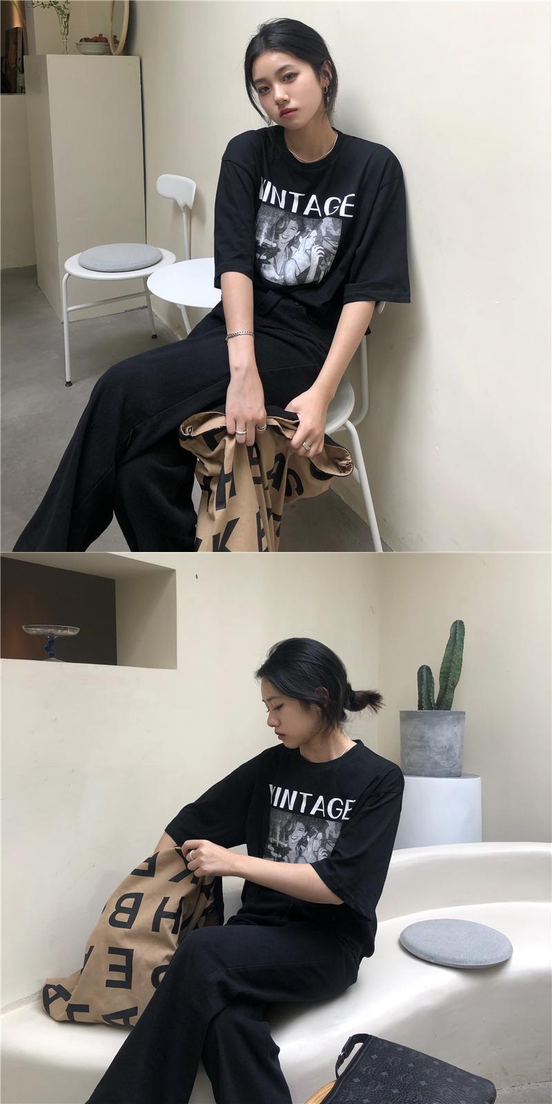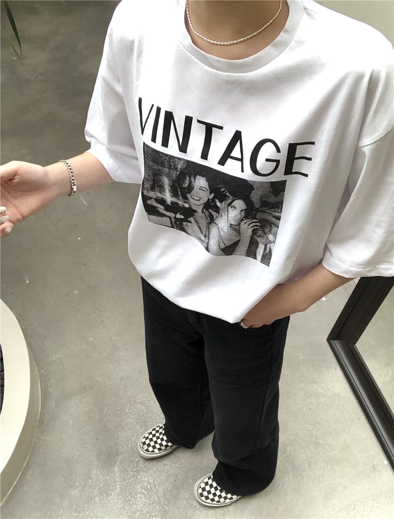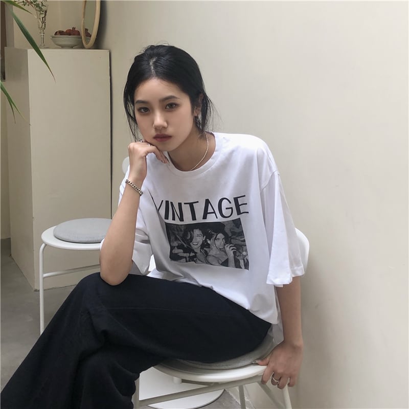 スタンダードプリントラウンドネックルーズTシャツ シャツ サマーカジュアルレディース レトロ 夏物 Oネック kumikum27116891868