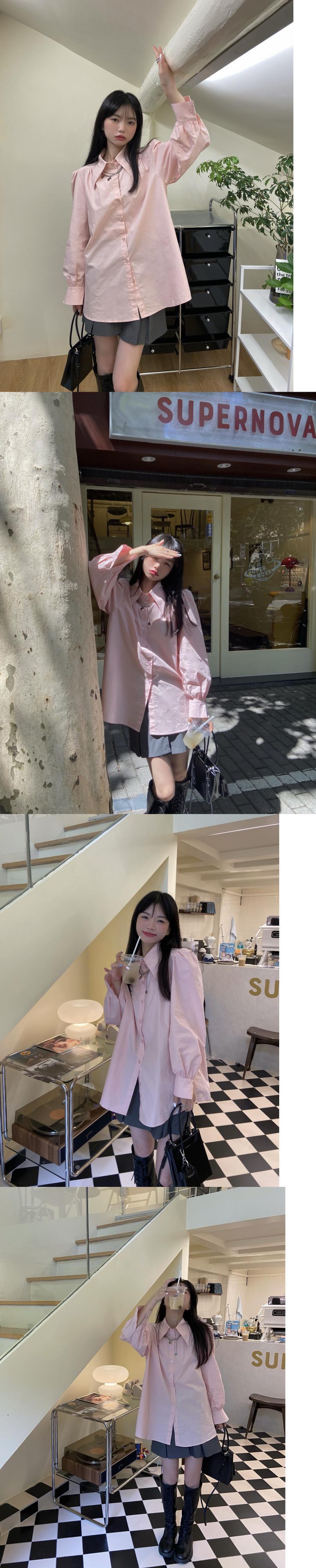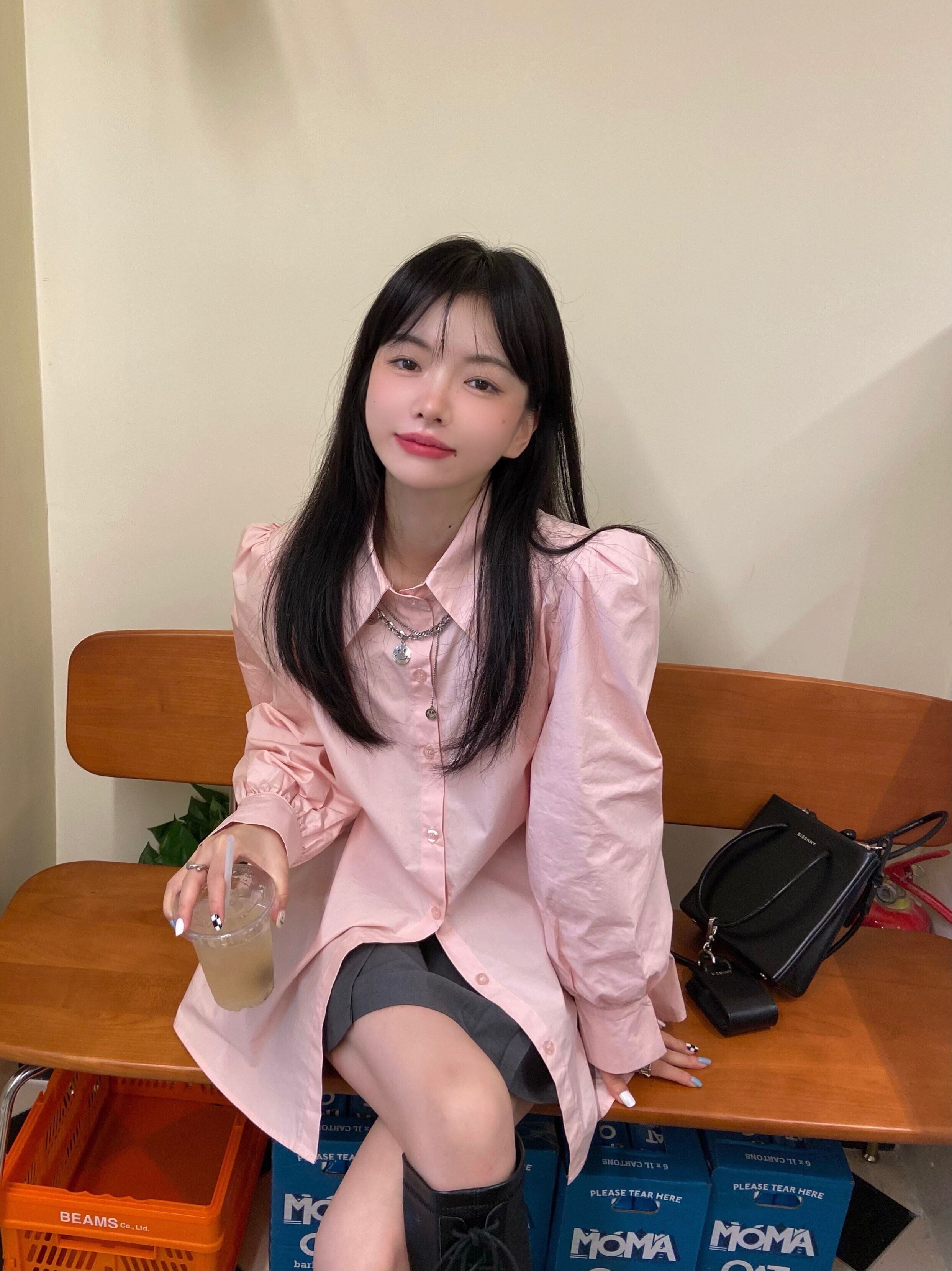 スリーブトップス スタンダードシャツ オータム ロング ピンク レトロ 秋物 kumikum42417852346
