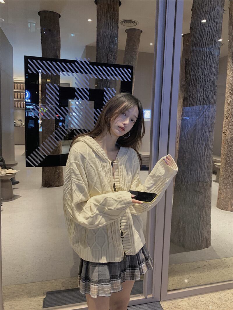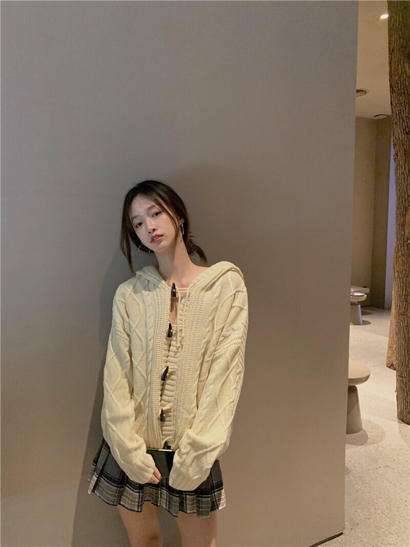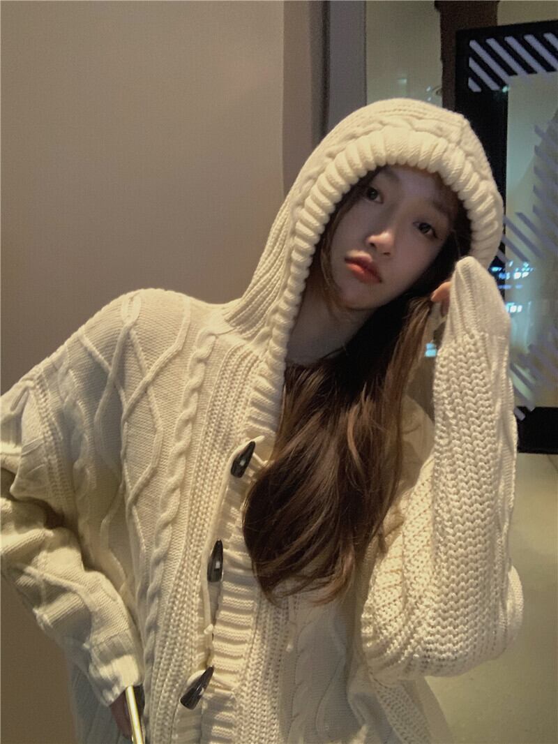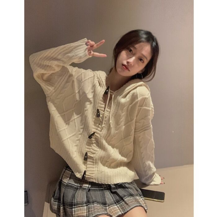 バックルフードセーター ジャケット レディースオータムルーズニットトップス 秋物 kumikum14743596894