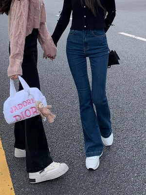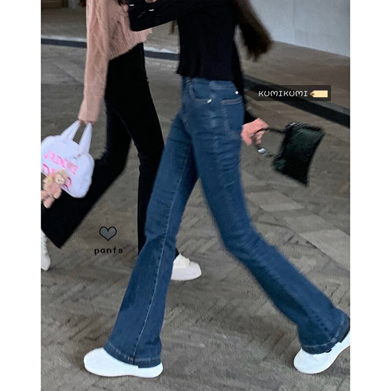 ハイウェストウェストパンツ スタンダードジーンズ オータムワイドレッグ レッド レトロ 秋物 ワイドパンツ kumikum85837572173