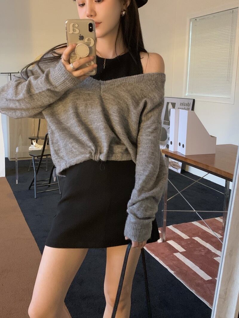 プルオーバー セーター オータムカラートップス ロング 秋物 オフショルダー kumikum82835876540
