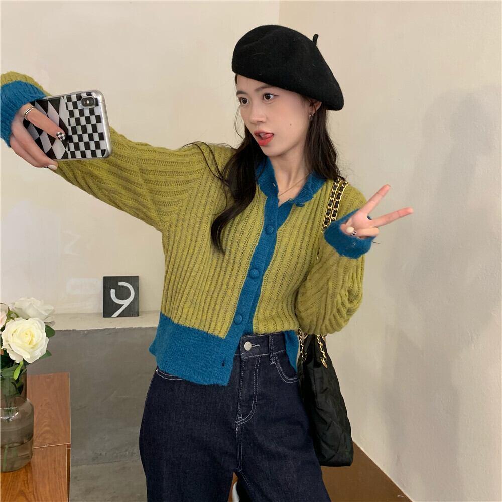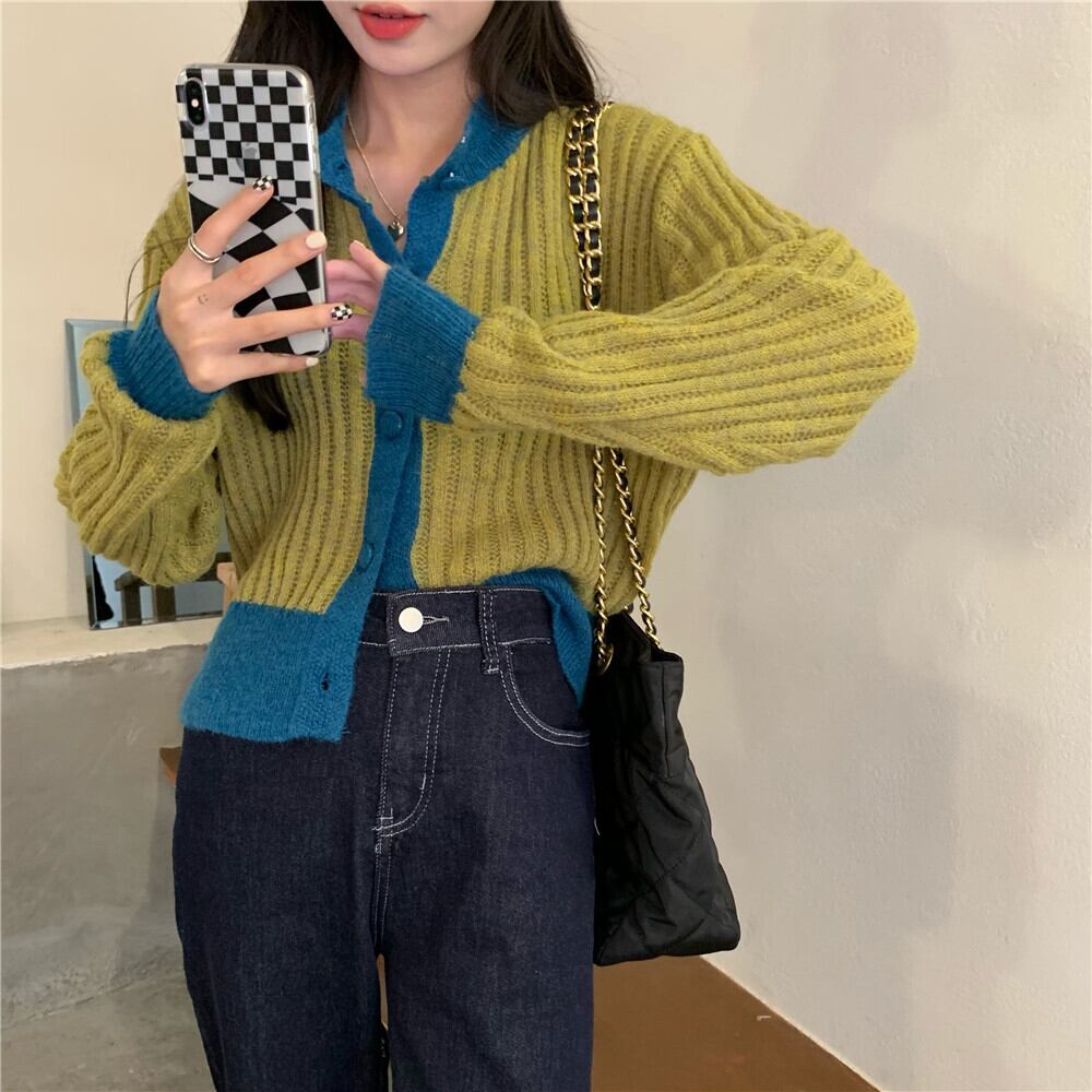 カラーカジュアルセーター オータムスタイルカーディガントップス ロング 秋物 kumikum48612320786