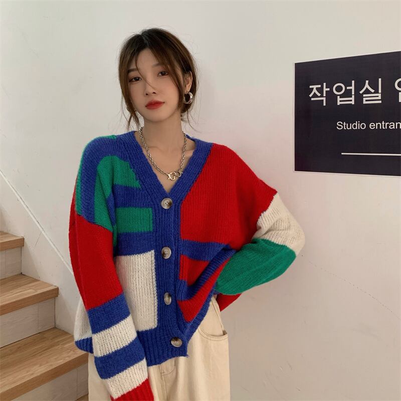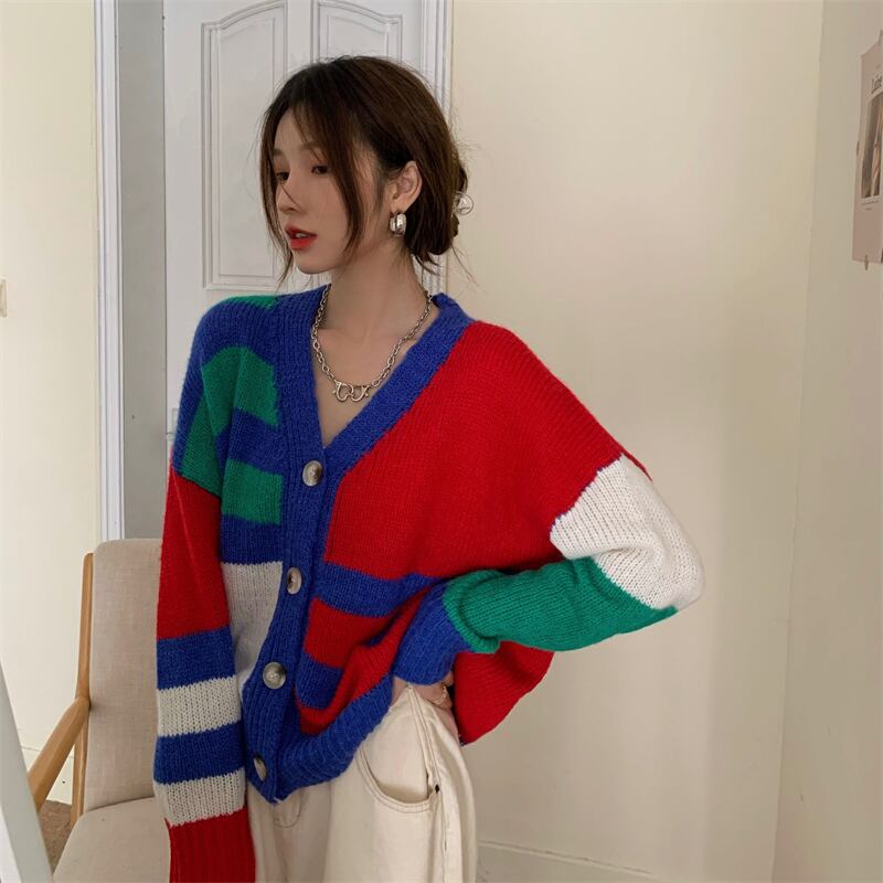 ストライプセーター カーディガンVネックオータムスタンダードジャケット レディース ロング レトロ 秋物 kumikum16155655905