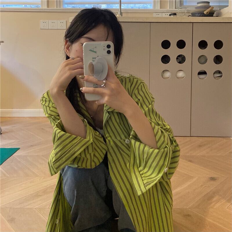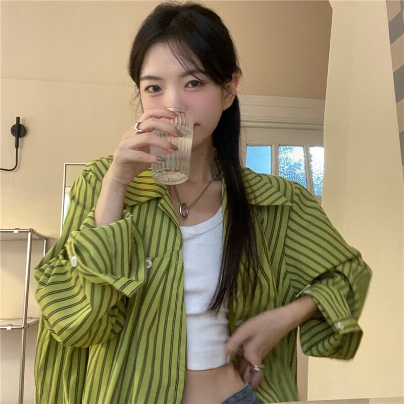 ストライプシャツ カーディガンジャケット オータムルーズ薄手 秋物 kumikum25524363856
