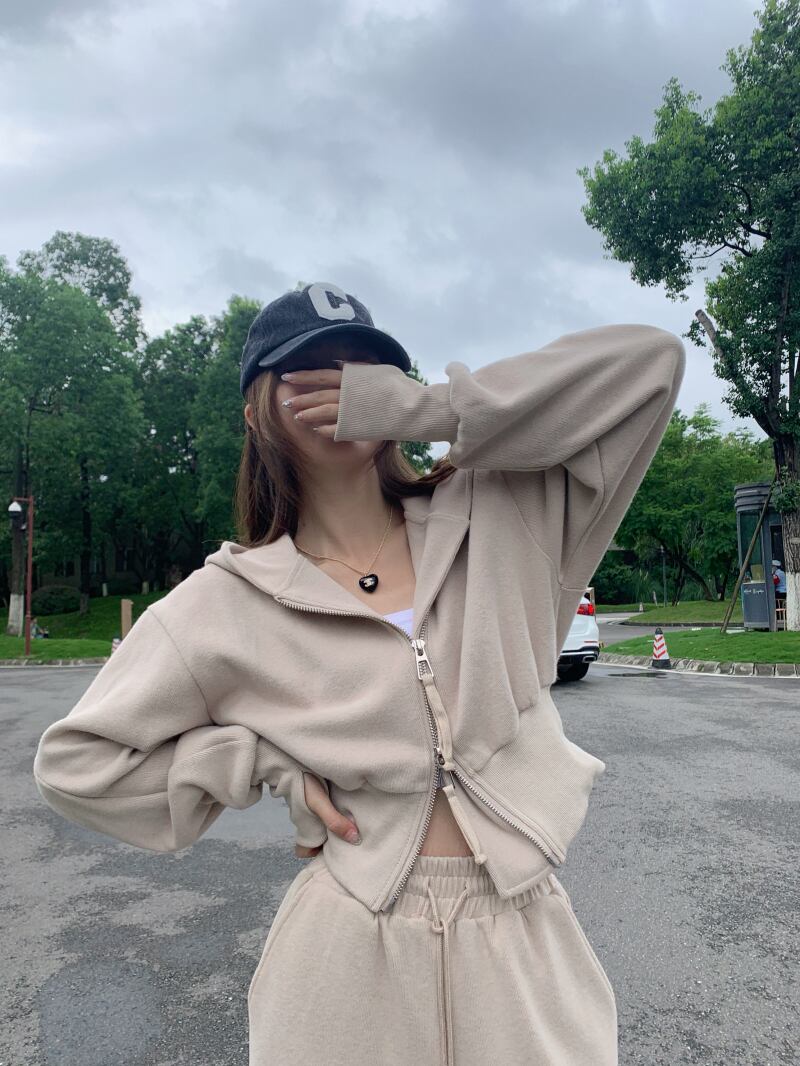 フードジッパーセーター コート オータムハイウェストウェストギャザーレディース 秋物 kumikum782387987