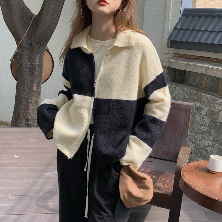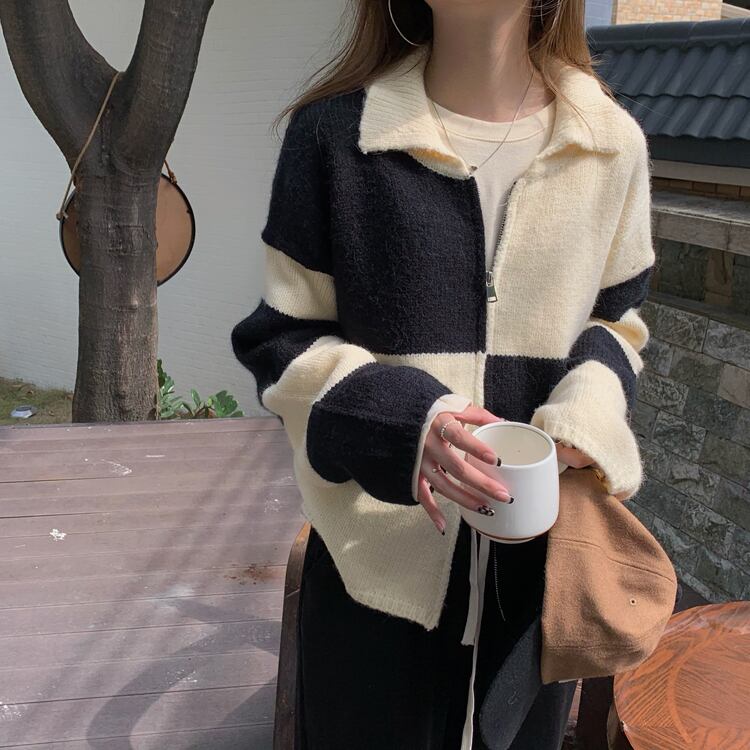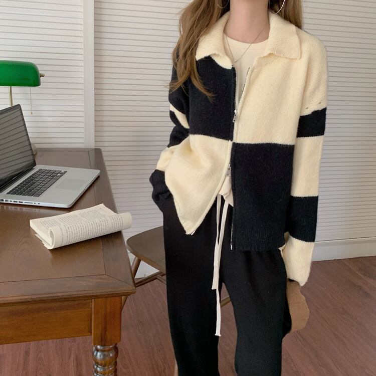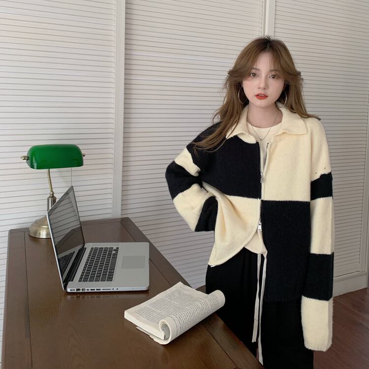 ダブルジッパーセーター カーディガンオータムニットジャケット レディース ロング 秋物 kumikum63703906212