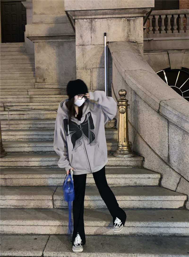 スタイルセーター ジャケット レディースオータムウィンタールーズプリント長袖スリーブベルベットトップス ロング ストリート 秋物 冬物 kumikum52942433076