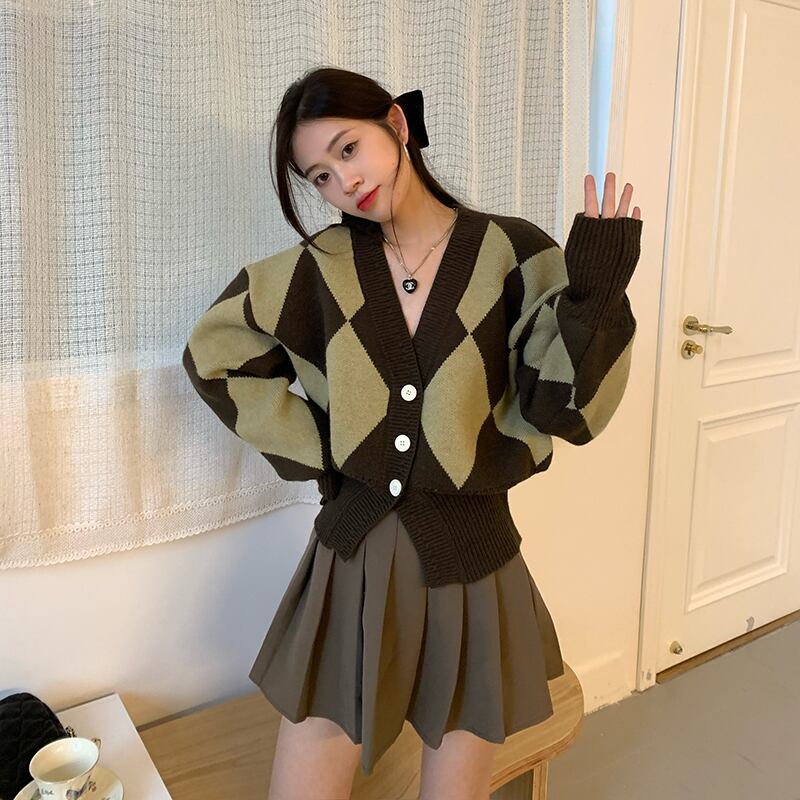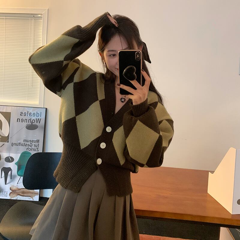 ニットカーディガンジャケット レディースルーズVネックセーター kumikum83297546059