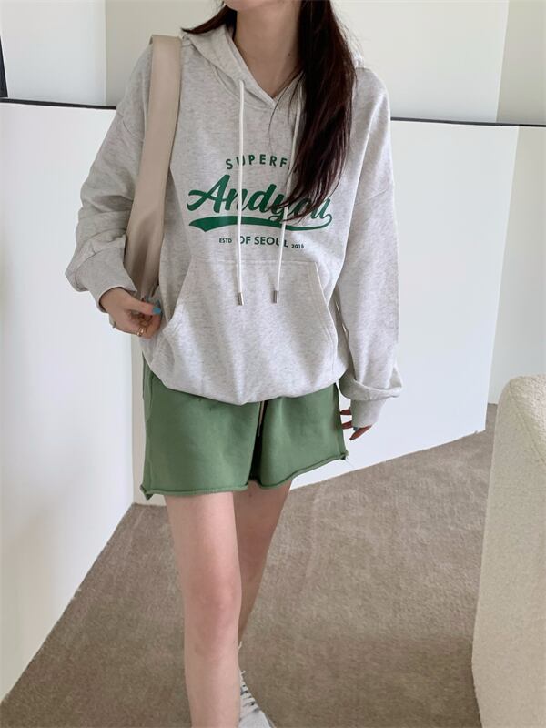 スタイルフードスウェット オータムカジュアルルーズプリントトップス ロング 秋物 kumikum73872734818