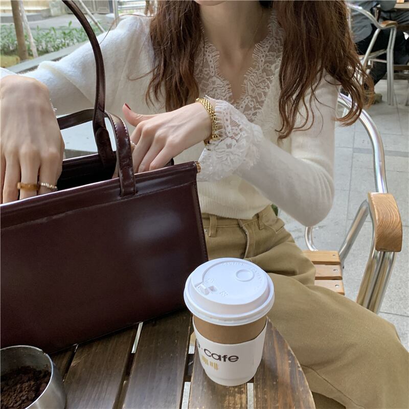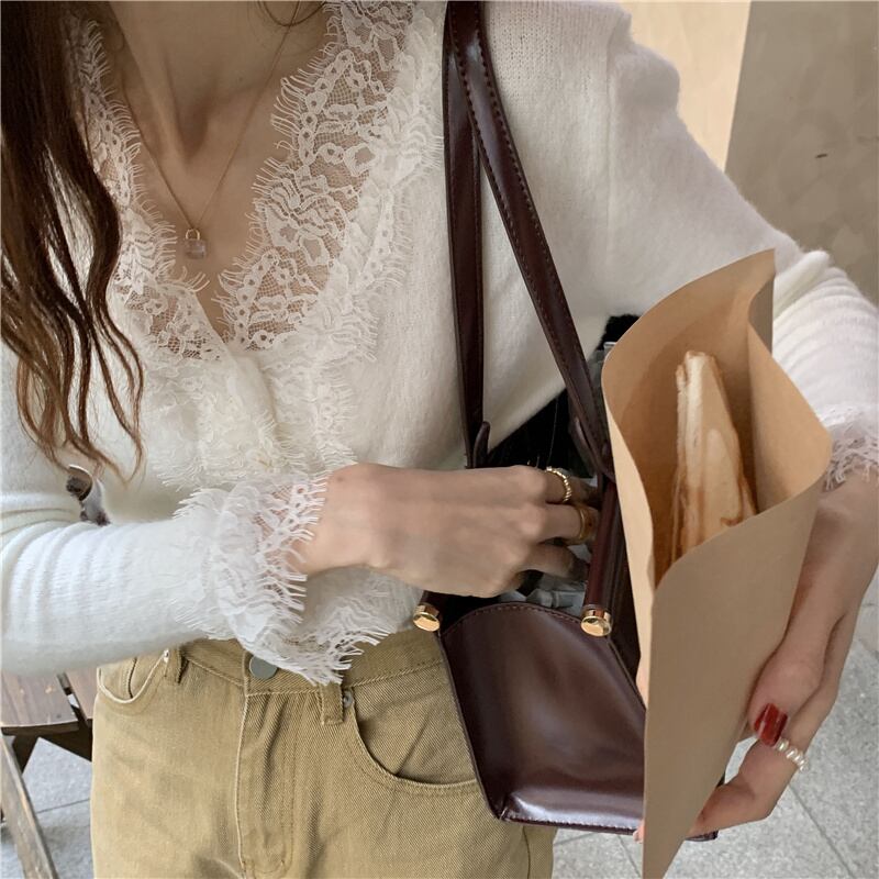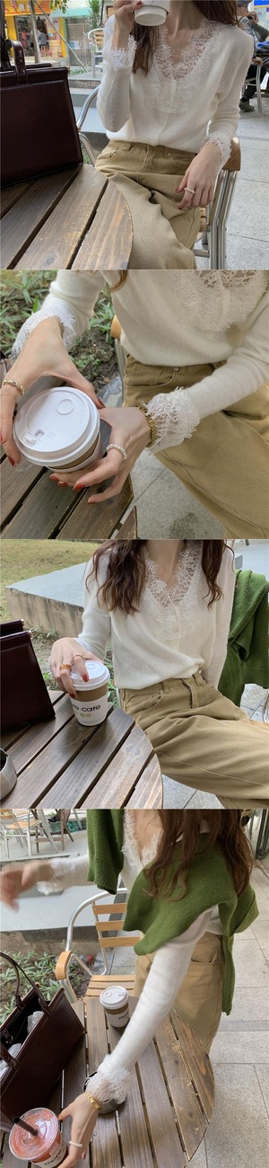 Vネックレースシャツ オータムウィンターブラウス セーター レディース ロング 秋物 冬物 kumikum57699864290