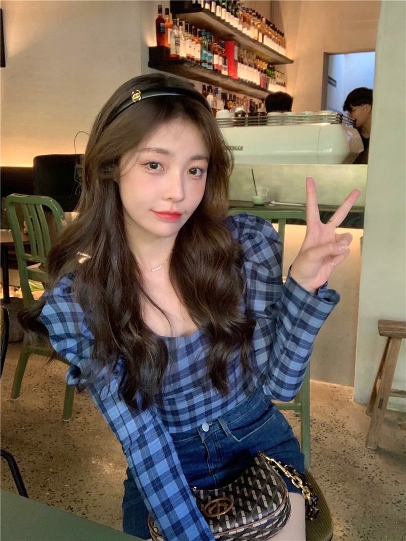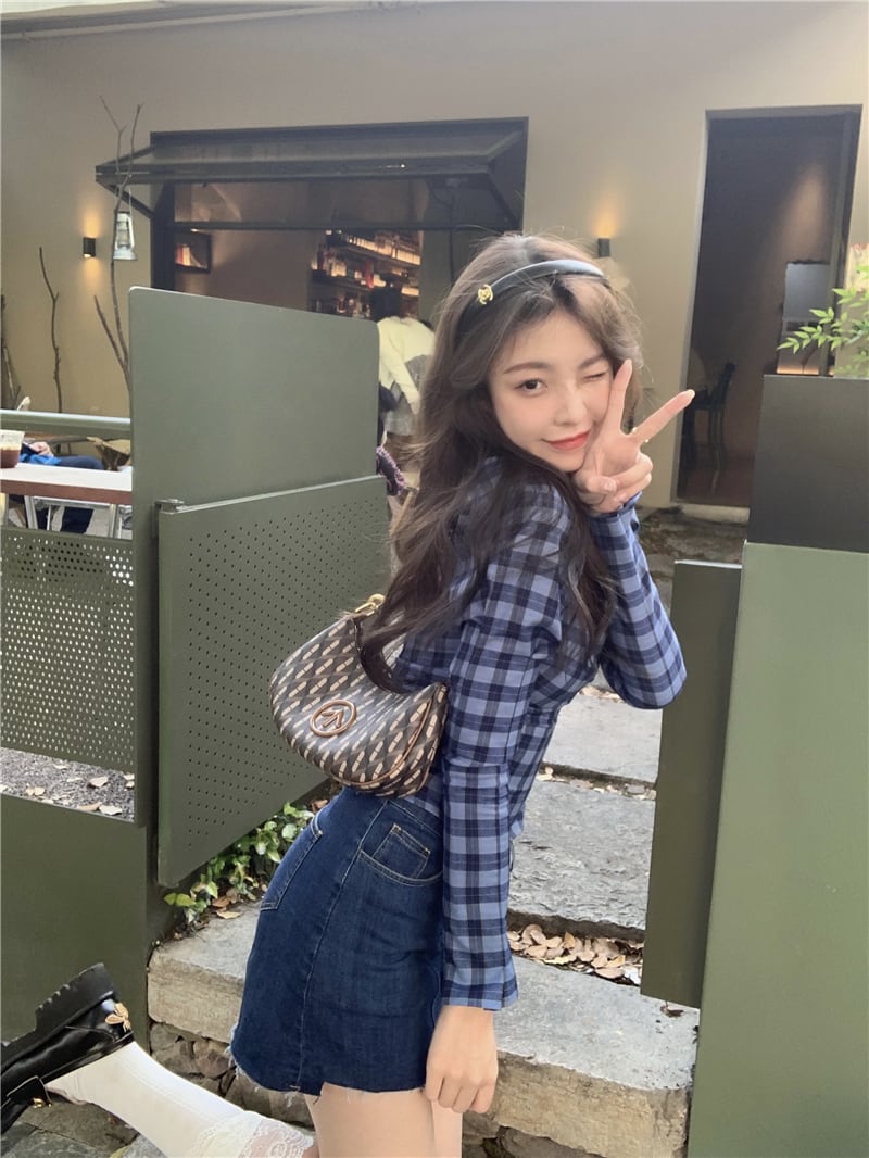 色:ブルーチェック柄トップ