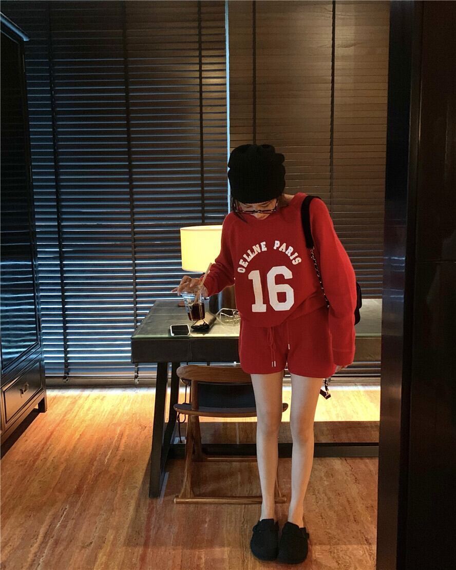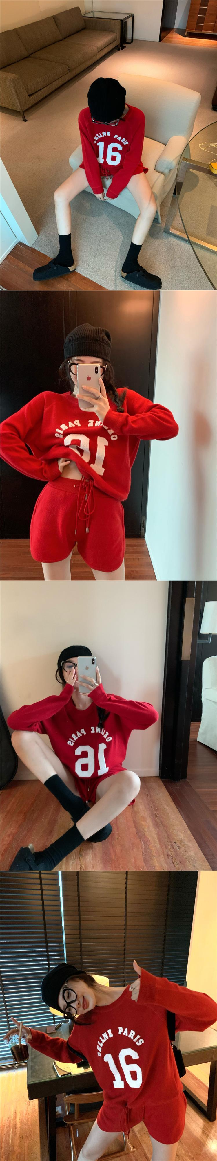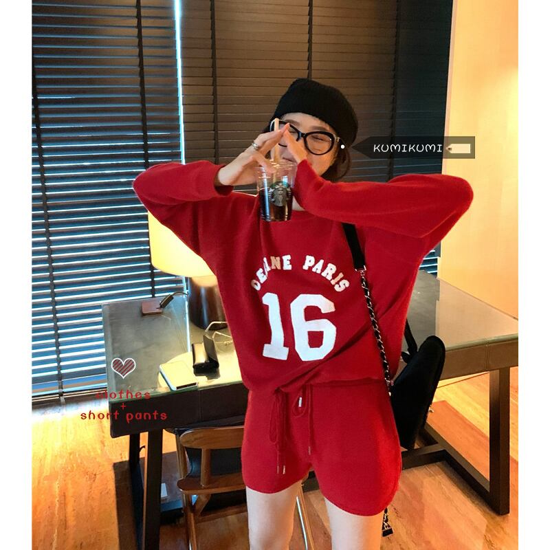 セーター レッドハイウェストウェストカジュアルショーツ オータム ロング 秋物 ブルマー kumikum51816371410