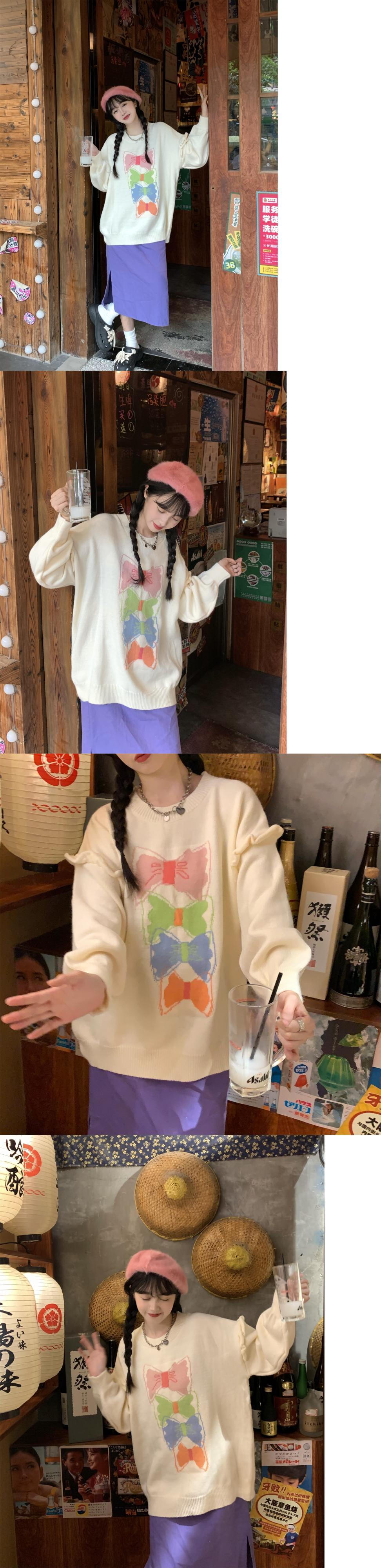 ジャカードプルオーバー セーター オータムウィンタールーズレディース ロング リボン 大人ガーリー スウィート キュート カジュアル 秋物 冬物 kumikum86994877931