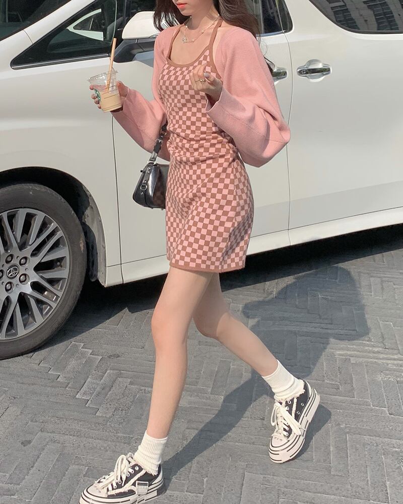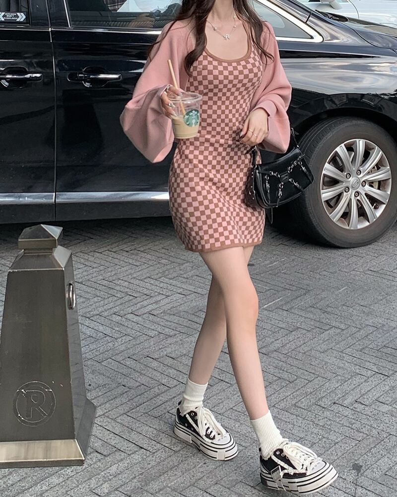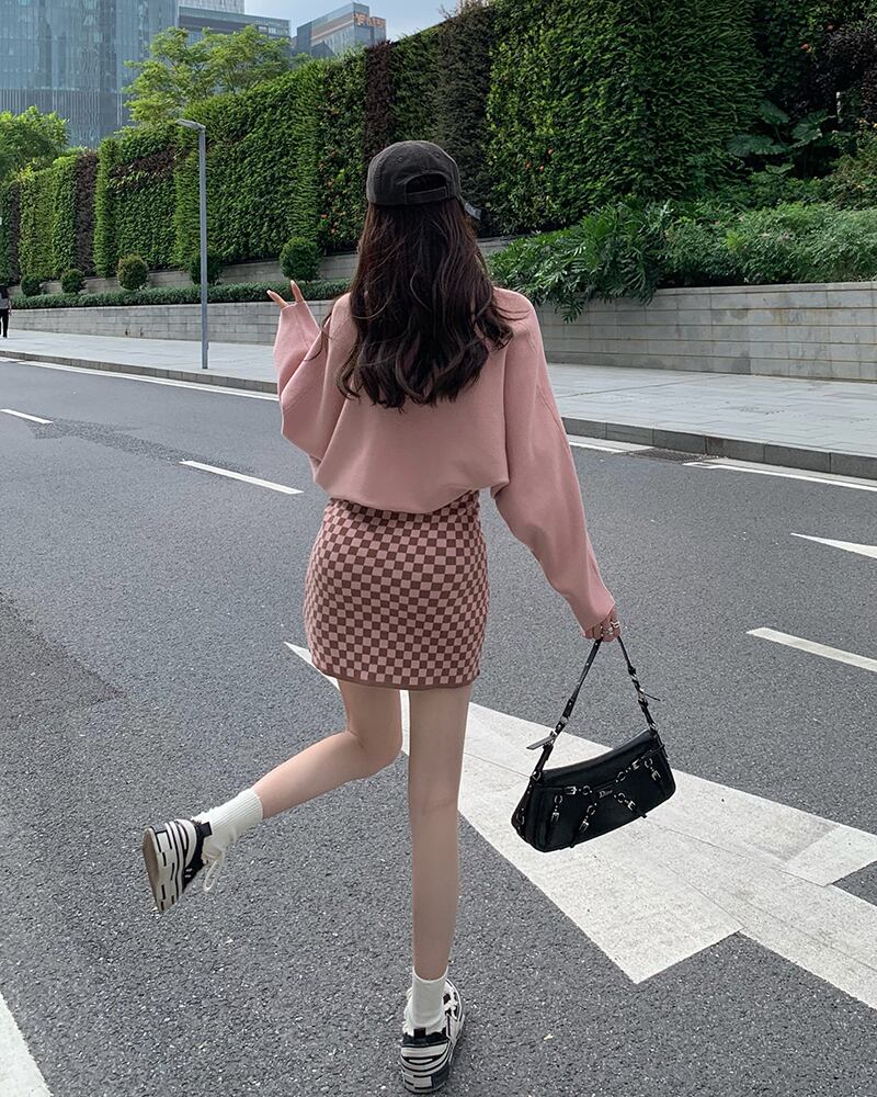 セーター カーディガンジャケット オータムウィンターニットスカート ピンク 秋物 冬物 kumikum11795775219